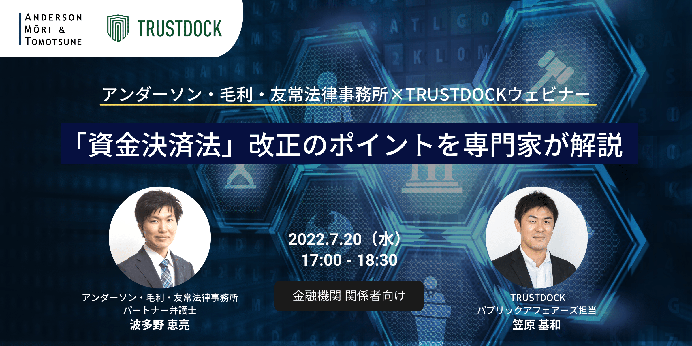 「資金決済法」改正のポイントを専門家が解説!アンダーソン・毛利・友常法律事務所×TRUSTDOCKウェビナーを2022年7月20日に開催
