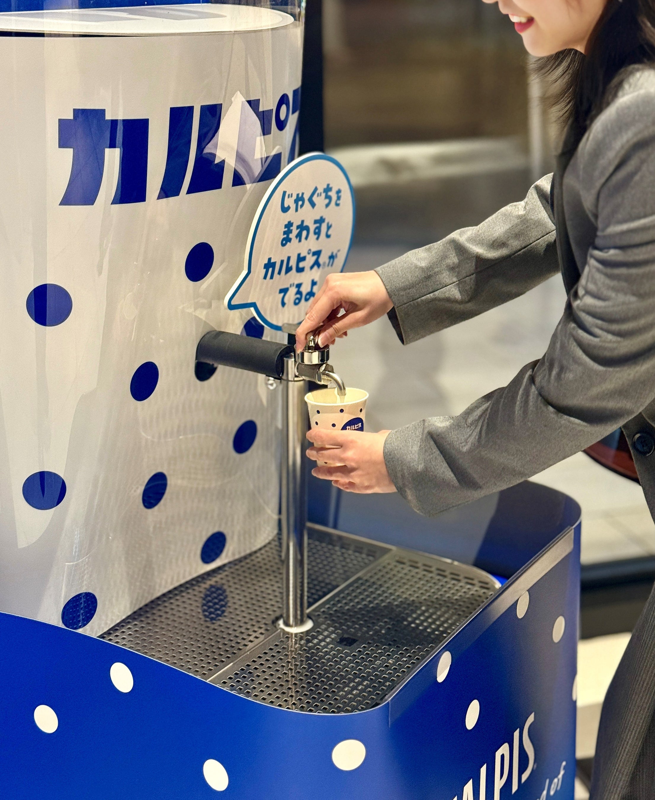 インパクトのある「カルピスじゃぐち」は、 InstagramのリールやTikTokといった縦型動画との相性が抜群。撮影を楽しみ、シェアしたくなる仕掛けをフロントロビーに創出しました。