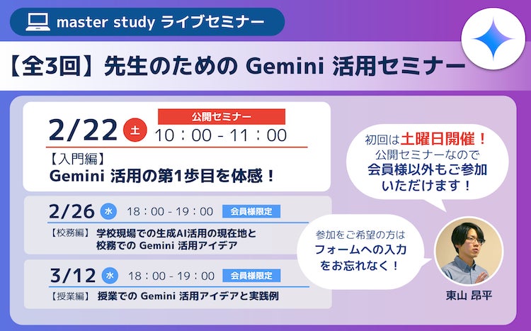 全3回 !先生のための Gemini 活用セミナー