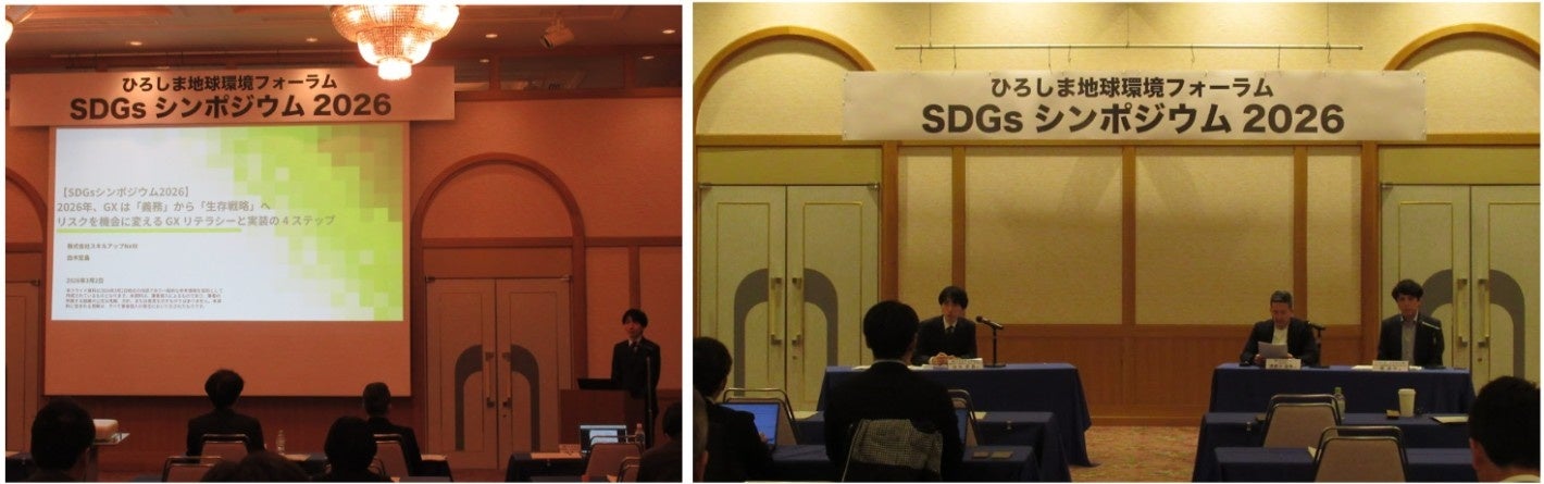 株式会社スキルアップNeXt(東京都千代田区、代表取締役:田原 眞一、以下「スキルアップNeXt」)の白木 宏昌が、2026年3月2日に開催された、ひろしま地球環境フォーラム主催「SDGsシンポジウム2026」の基調講演に登壇しました。最新のGX動向から、企業の競争力を左右する「GX人材」の育成について、具体的な実践手法を交えて講演いたしました。