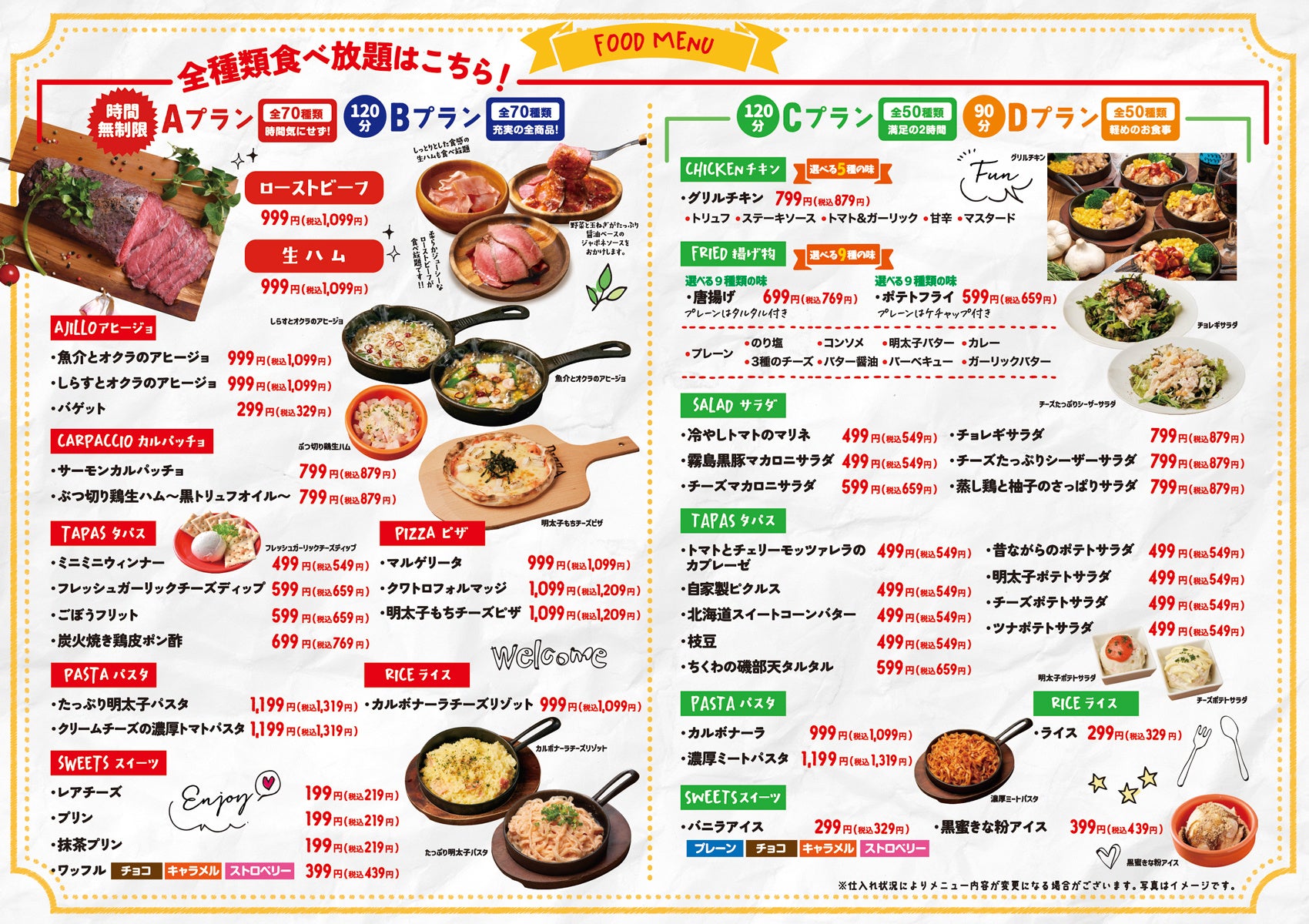 洋風食べ飲み放題プラン 2,000円から。3,500円の「時間無制限食べ飲み放題プラン!」コスパが神がかっている!?