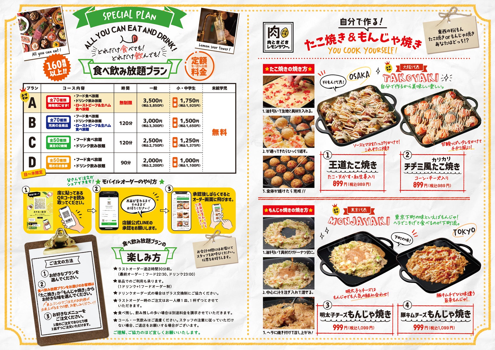 Bプラン【2時間160品食べ飲み放題】高コスパ!肉レモ全品食べ飲み放題⇒3,300円(税込)