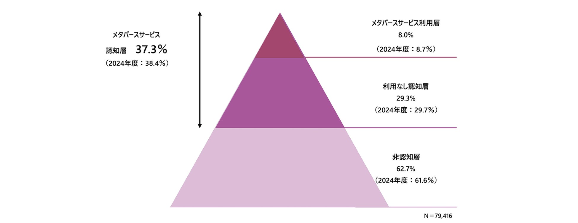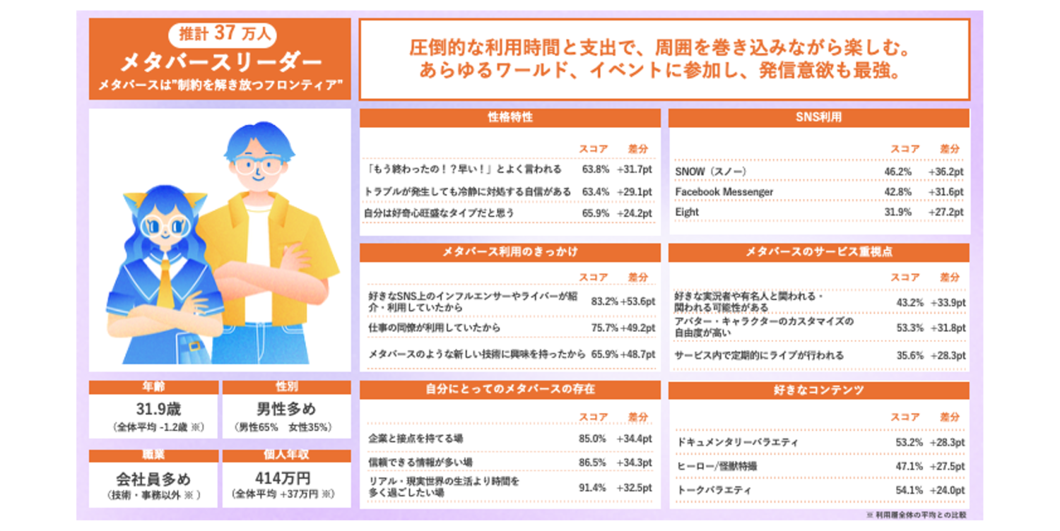 (※)約60のメタバース関連サービスを提示し、認知、利用経験・頻度を聴取。2-3ヶ月に一度以上いずれかのメタバース関連サービスを利用している人をメタバース利用層と定義。