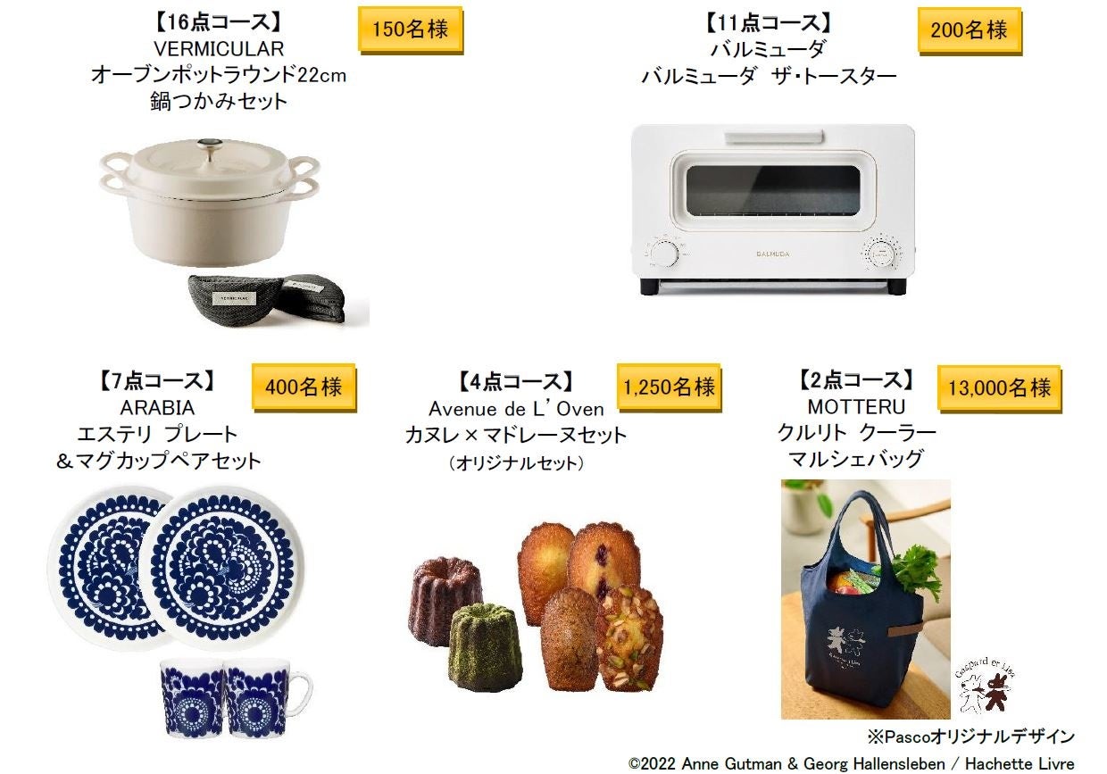今回のキャンペーンでは「選んで楽しい!春のプレゼント」と題し、無水調理ができるお鍋をはじめ、トースターや本格的スイーツなど、5つの賞品コースからお好きなコースをお選びいただき、抽選で総計15,000名様にプレゼントいたします。