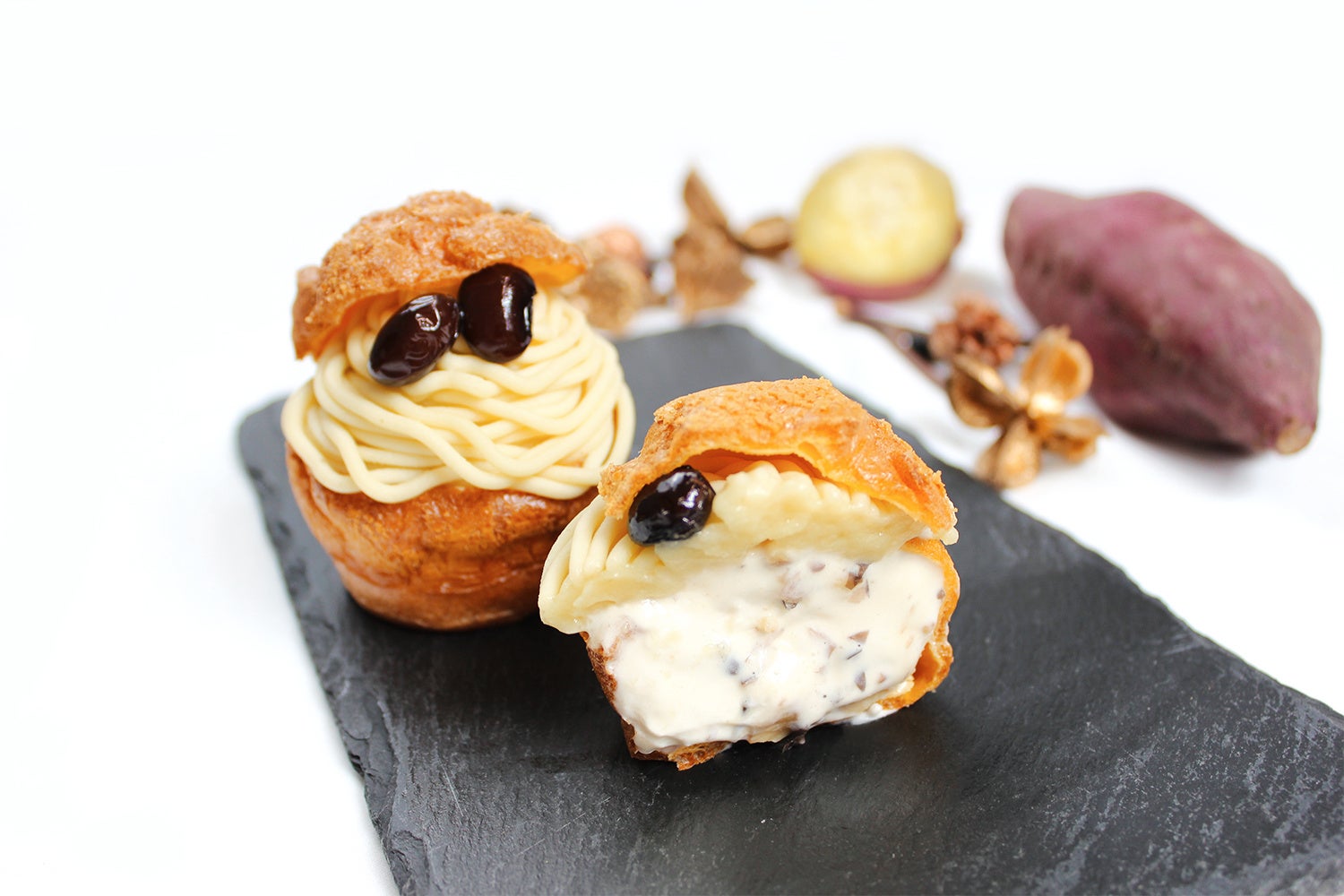 秋冬限定「さつまいも(夢シルク)と黒豆のモンブランシュー」