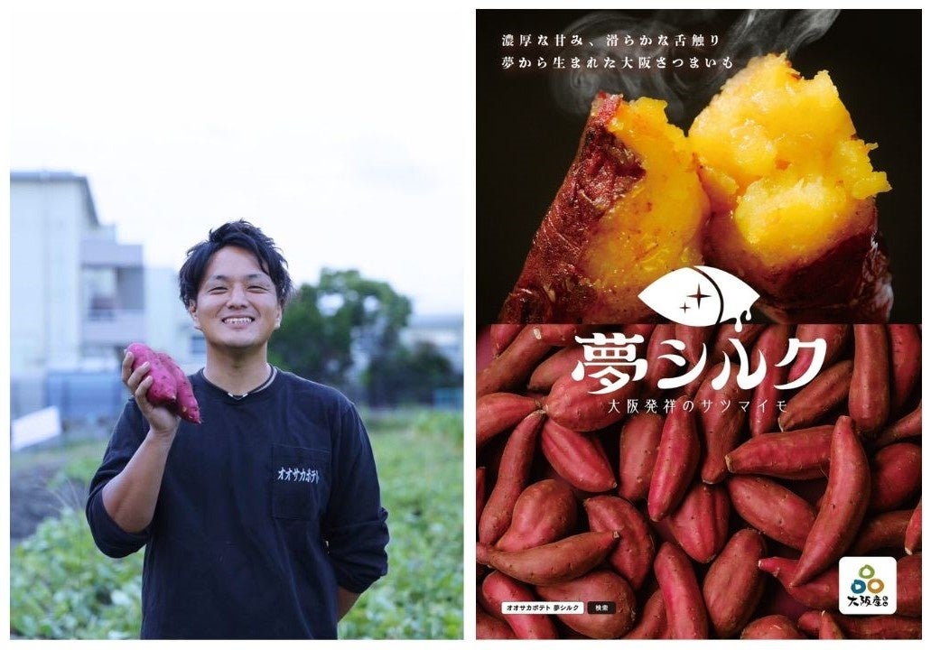 大阪府が推進する大阪産(もん)認定を受け、独自ブランドとして特産品化を進める大阪発祥ブランドさつまいも。 地域資源「竹炭」を活用した土づくりと、ひと手間加えた熟成行程を経て出荷される夢シルクは、上品かつ濃厚な 甘みと絹のように滑らかな舌触りが特徴です。