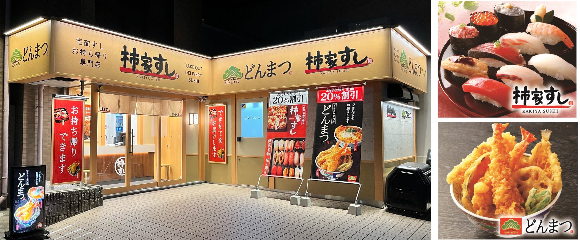 株式会社フォーシーズ(本社:東京都港区南青山 代表取締役社長:淺野幸子)は、2022年3月14日(月)に、出前寿司「柿家すし」と、宅配どんぶり専門店「どんまつ」の併設店舗を京都に初出店いたします。