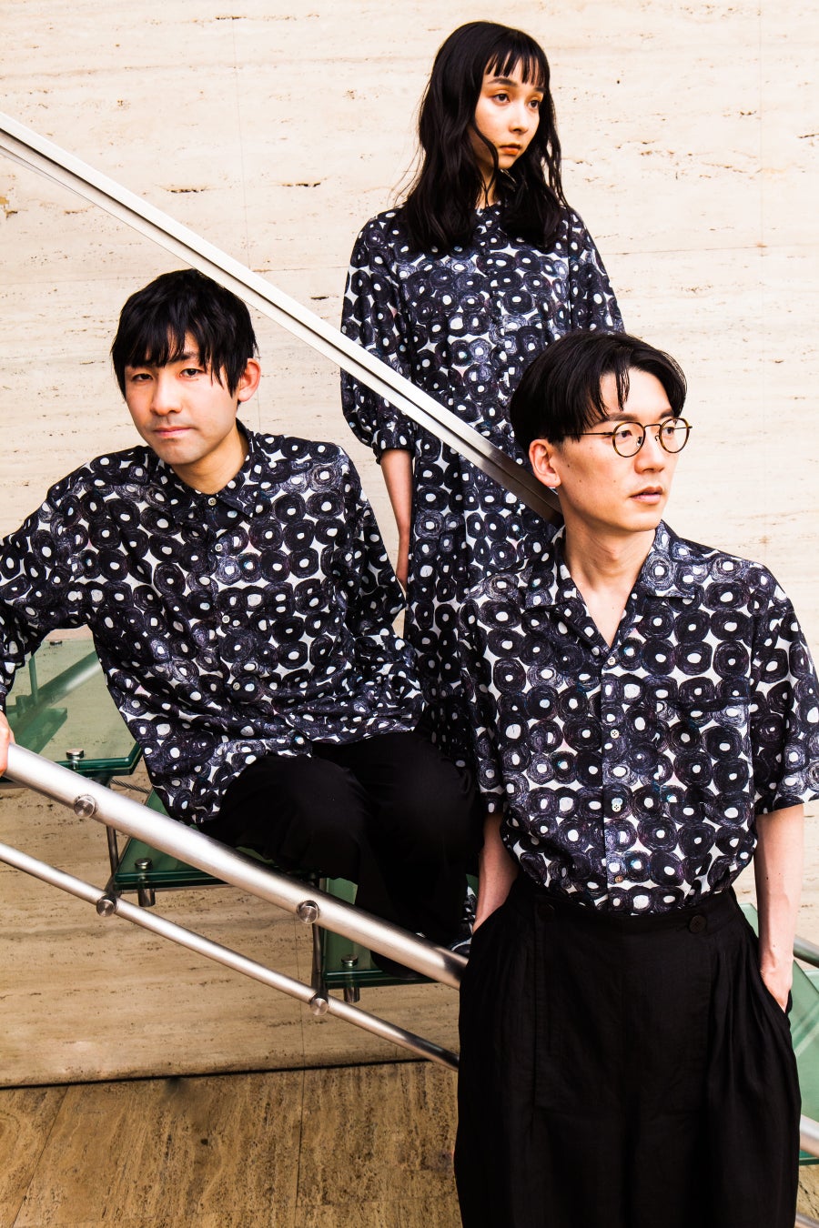 衣装デザインはHERALBONYのアートとしてブランド設立初期から親しまれている岩手県のアーティスト佐々木早苗の『(無題)(丸)』をプリントした新作のシャツとワンピースを着用しています。