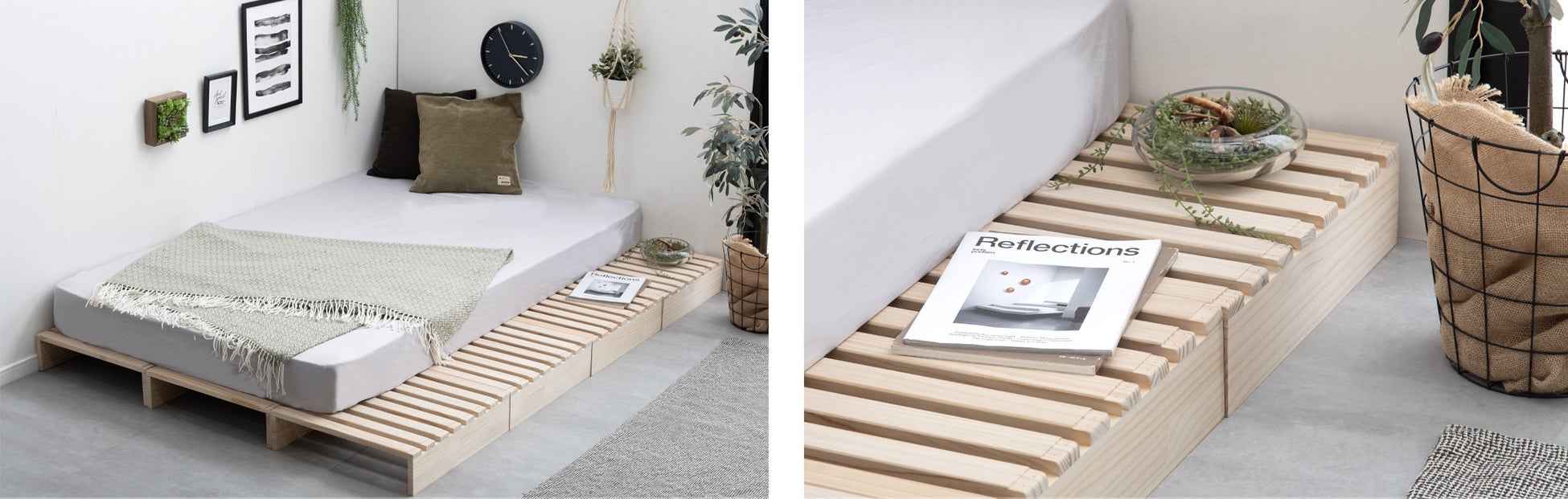 ベッドのサイズや形を無限にカスタマイズできる“パレットベッド”が新登場!ローベッドやステージベッド、宮棚付きベッドなど暮らしに合わせて自在にアレンジ!