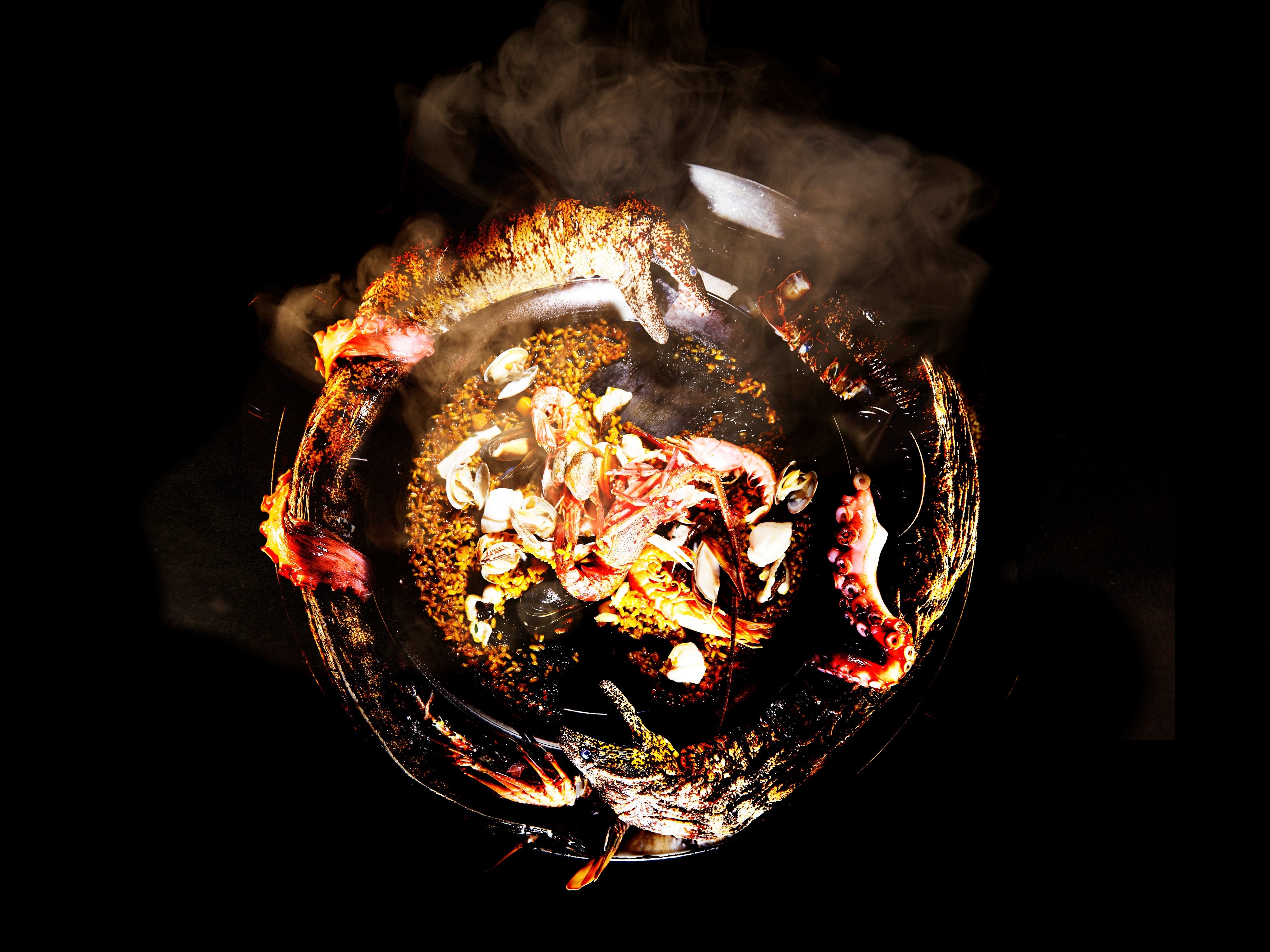 しかし様々な地球環境変化により真蛸が減少、ウツボの個体数は増加し、捕食するものを求め共生関係にあったウツボが伊勢海老を捕食し始めてしまいました。三重県の水産関係者(三重外湾漁業協同組合や漁師等)によると、2022年夏にはついに伊勢海老の水揚げ量がおよそ1/10、真蛸の著しい減少から真蛸漁はほぼゼロに。(2023年3月末時点)課題に直面した、伊勢志摩地方で冷凍業と漁業を営む石川隆将氏と「EAT to KNOW」が里山と同じ考えで人間の手をいれ、ウツボを当たり前に食べる食材として認知させ、その需要の拡大と市場価値の構築を目標に、海のバランスを取り戻す為のきっかけや沿岸部の環境課題に対する関係人口を増やすことを目指しています。その皮切りとして、バルセロナ発のパエリア専門店〈XIRINGUITO Escribà(チリンギートエスクリバ)〉のシグネチャーパエリアと伊勢志摩の生態系にフィーチャーしたコラボレーションパエリア「伊勢志摩の海のパエリア」を販売。(3/27〜)地理的特徴や産業構造が似ていることから三重県とスペインは姉妹都市提携を組み、今回のコラボレーションのきっかけとなりました。ウツボ・真蛸・伊勢海老で構成予定でしたが、パエリアからあえて真蛸を外し、生態系が壊れている状態を伝えています。視覚的にこの問題を表現するべく、キービジュアルは「In-yo(陰陽)」フォトグラファーの石川寛氏が撮影。ウツボがパエリアパンをぐるりと囲む様子を、ウツボに全て取り込まれている現状をセンセーショナルに表現しました。