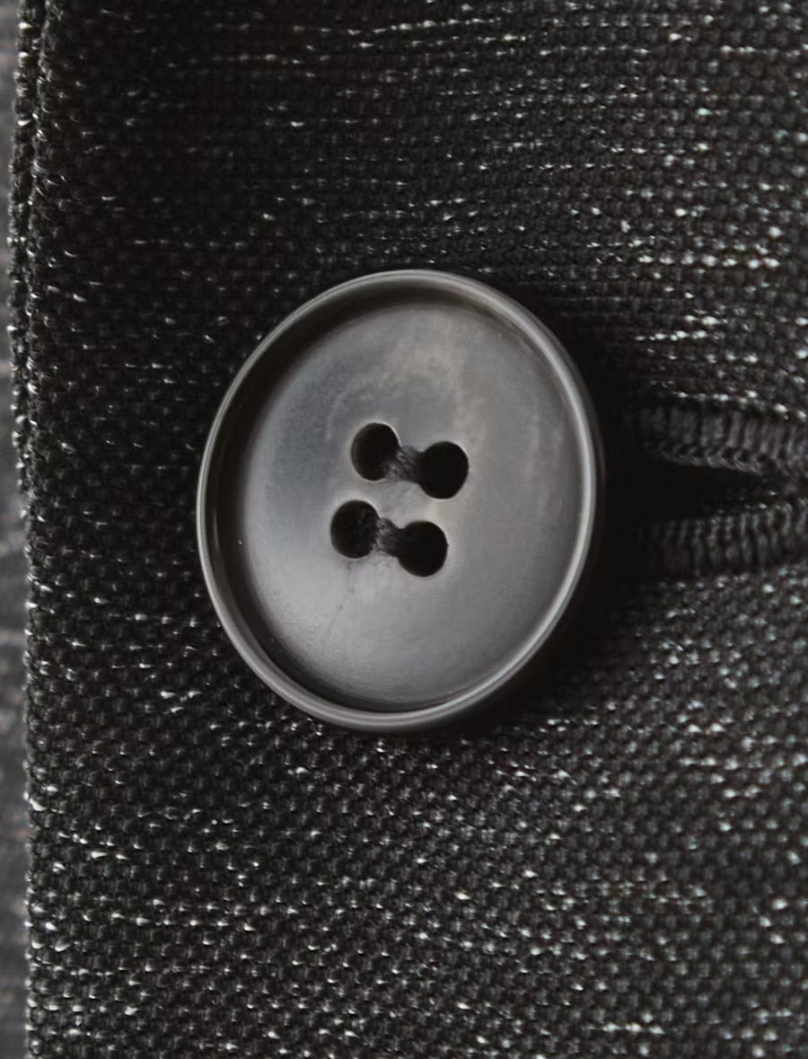 ウォッシャブル仕様のためボタンは樹脂製ですが、水牛ボタン調で高級感もしっかり。