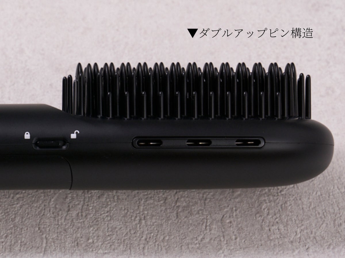 長短2本が交互に配置された非発熱ピンの集合体「ダブルアップピン構造」で 髪をときほぐし、「スムースヒートプレート」で熱を通すため、髪に熱を入れながらブラッシングすることで、手早く艶のある指通りの良い髪※を実現いたします。