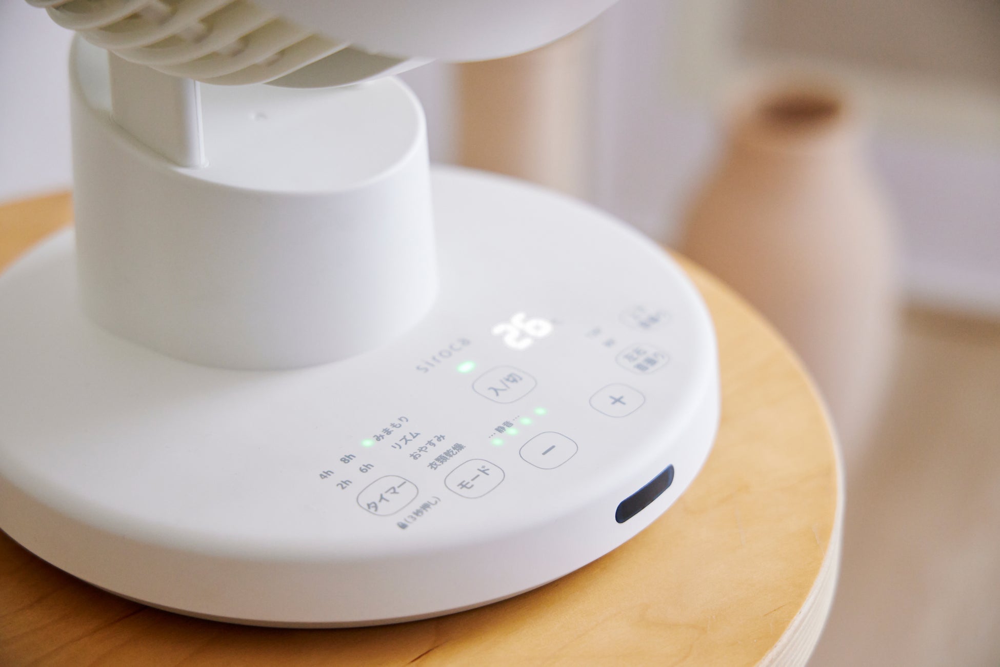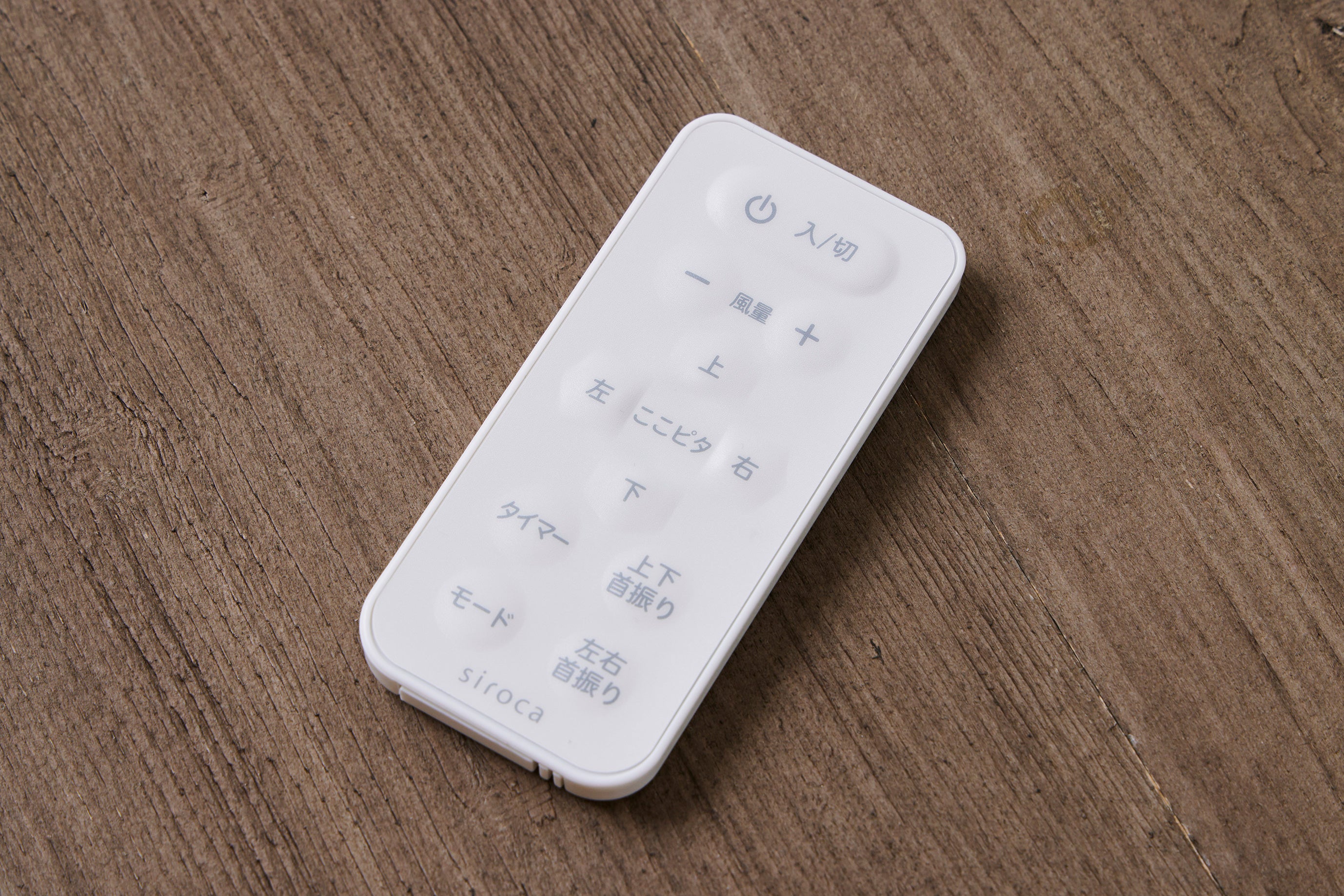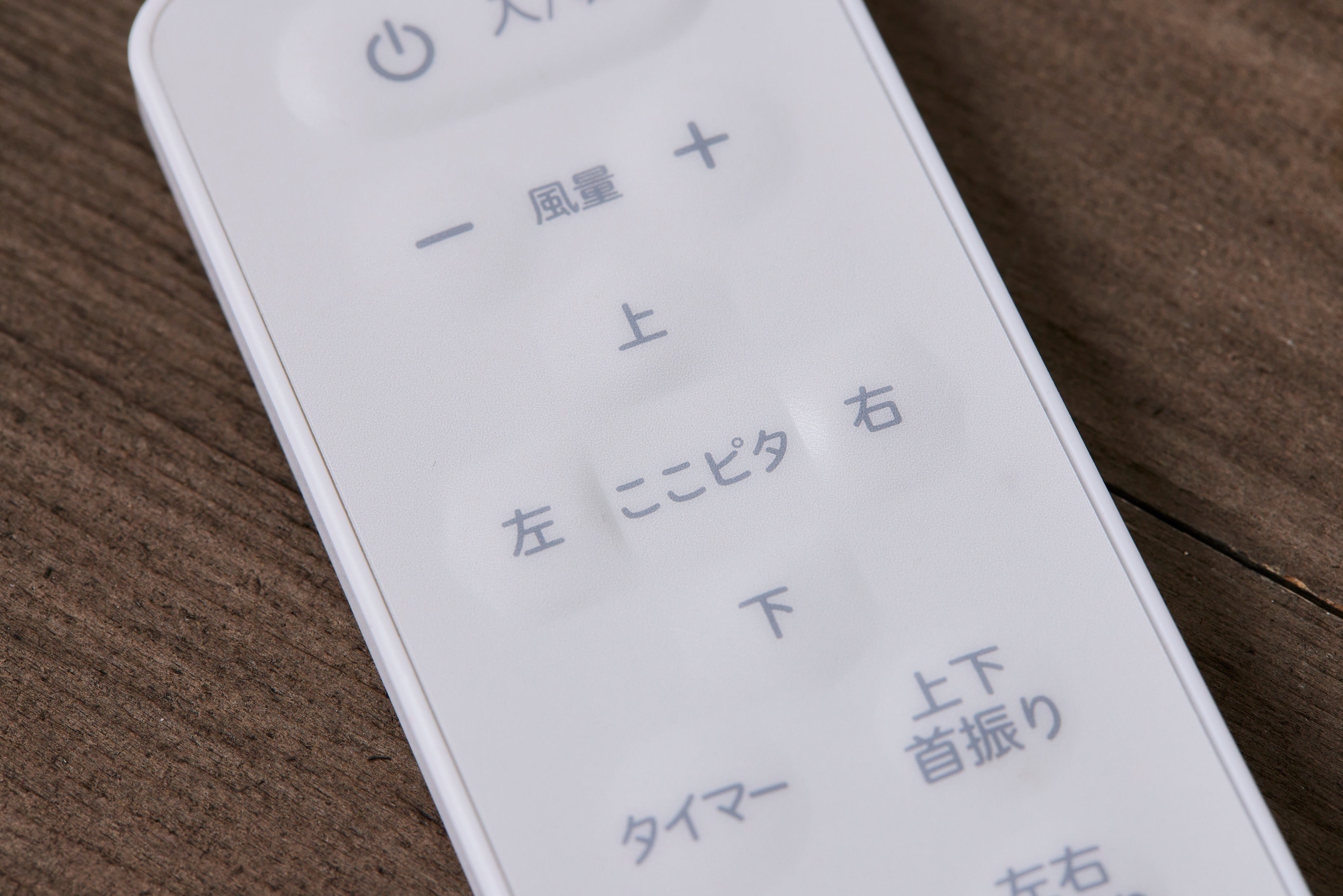 シロカの扇風機シリーズ・2024年モデルに搭載している「ここピタ」機能は本製品にも搭載。風を向けたい方向にリモコンの「ここピタボタン」を長押しし、止めたい位置でボタンを離すことで、首の向きを細かく調節することができます。正面から左右60°、上90°の範囲で調節でき、欲しいところにピンポイントに風を届けます。