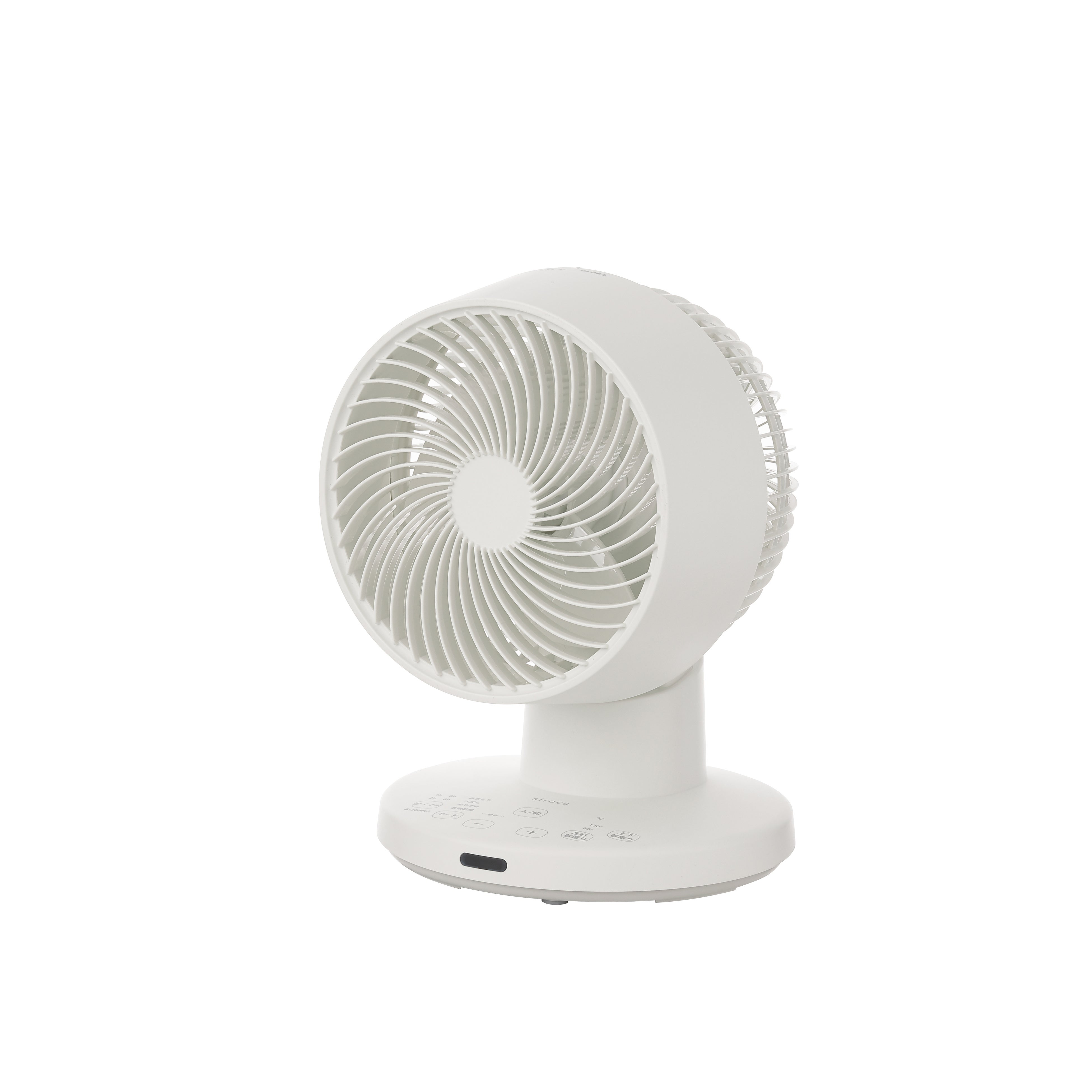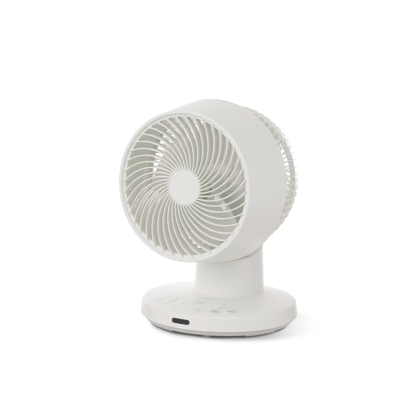 コンパクトなサイズ感ながら、パワフルな風量が特長。上90°、左右80°(正面から40°)または120°(正面から60°)の立体的な首振りにより、お部屋のすみずみまで送風して空気を循環させます。ご家庭ではもちろん、より広い空間に風を送りたいオフィスでも活躍します。