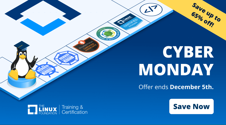 - キャンペーンサイト (日本語版対象製品) : https://training.linuxfoundation.org/ja/cyber-monday-jp-2022/