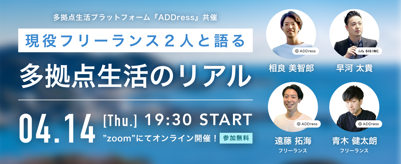 【無料ウェビナー】【ADDress × Workship】現役フリーランス2人と語る多拠点生活のリアル