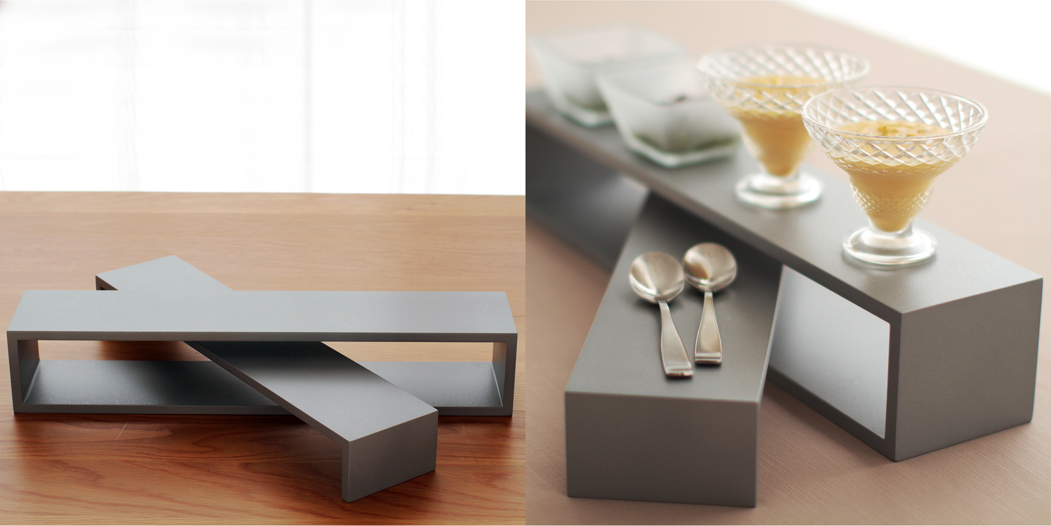 形の違う2つを様々な置き方で楽しめるセンターピース。