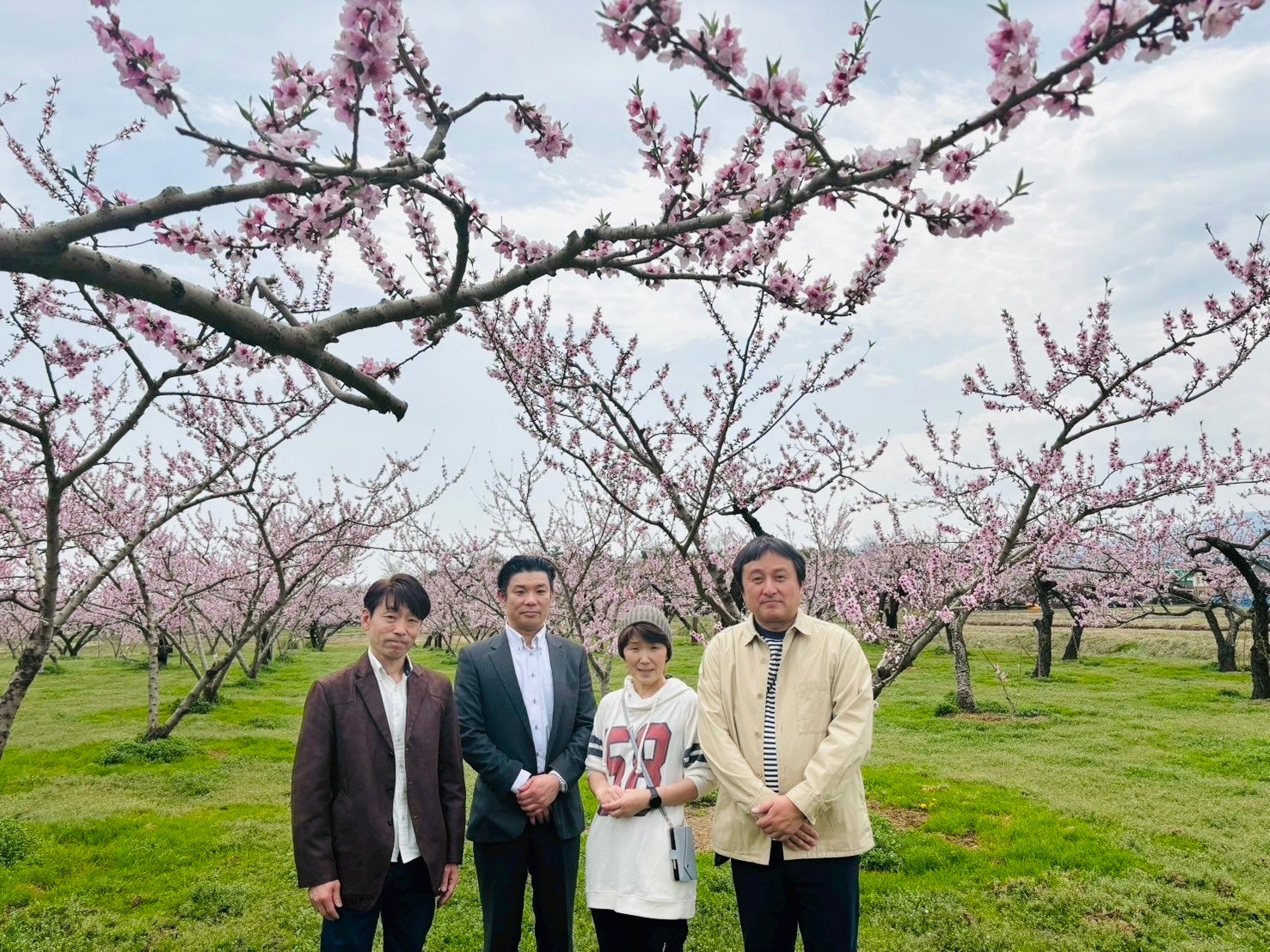 本年5月には、料理長の石川 篤志(写真左)とシェフパティシエの貝塚 文浩(写真左から二人目)が今回の「ピーチフェア」で使う桃の里、福島県福島市のかんたファームを訪問しました。ちょうど桃の花が咲き誇る美しい時期に訪問したこともあり、菅田さん(写真左から3人目)のお話や農園から感じたさまざまなインスピレーションを受け、フェアスイーツに生かしています。