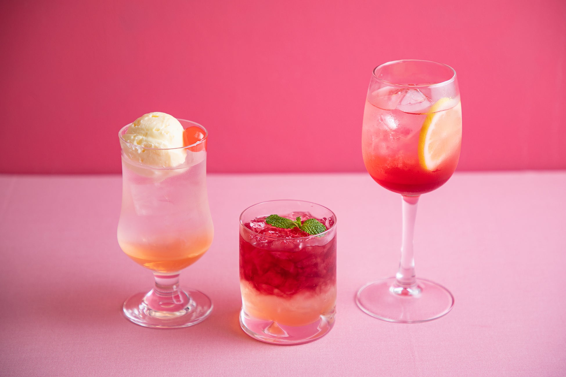 ピーチスイーツと一緒ににおすすめのピーチ香る爽やかな味わいのノンアルコール2種、アルコールを加えたカクテル1種ををご用意しました。