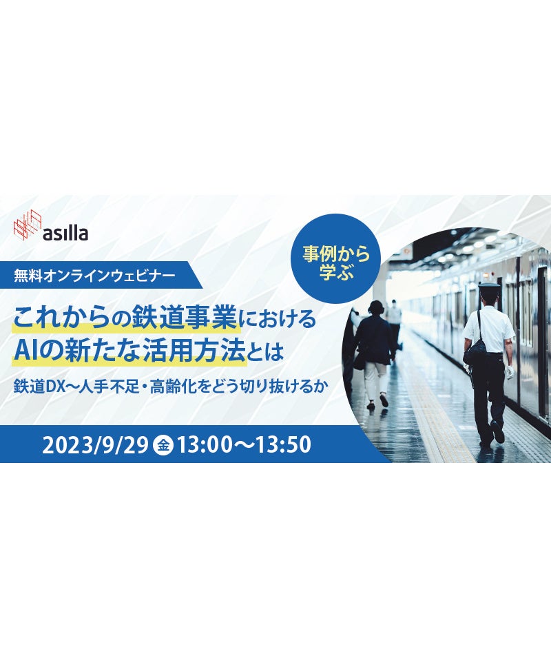 ■ウェビナー名:【事例から学ぶ】これからの鉄道事業におけるAIの新たな活用方法とは ■開催日時:9月29日(金) 13:00~13:50