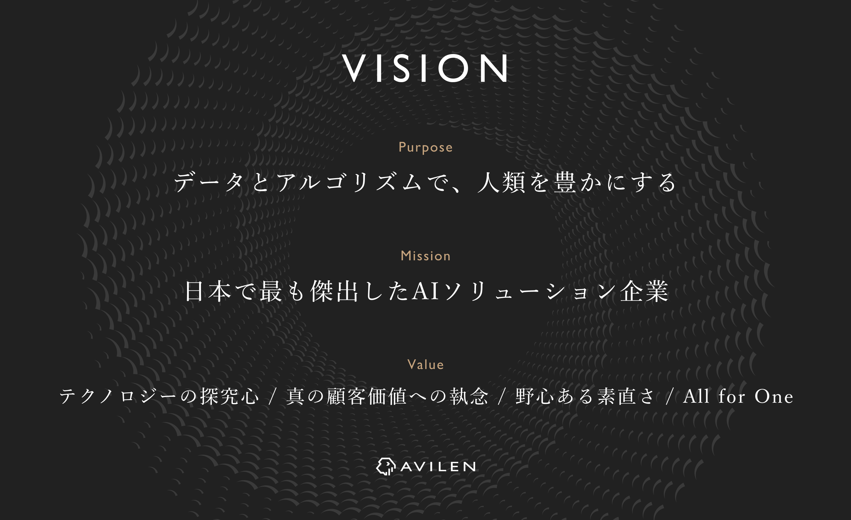 データサイエンティストやエンジニアはもちろん、ビジネスサイドやバックオフィスに至るまで、全てのメンバーがテクノロジーの可能性を信じ、学び、理解し、活用し、多くの人へ広める精神を体現していることが、AVILENの根源的な価値です。