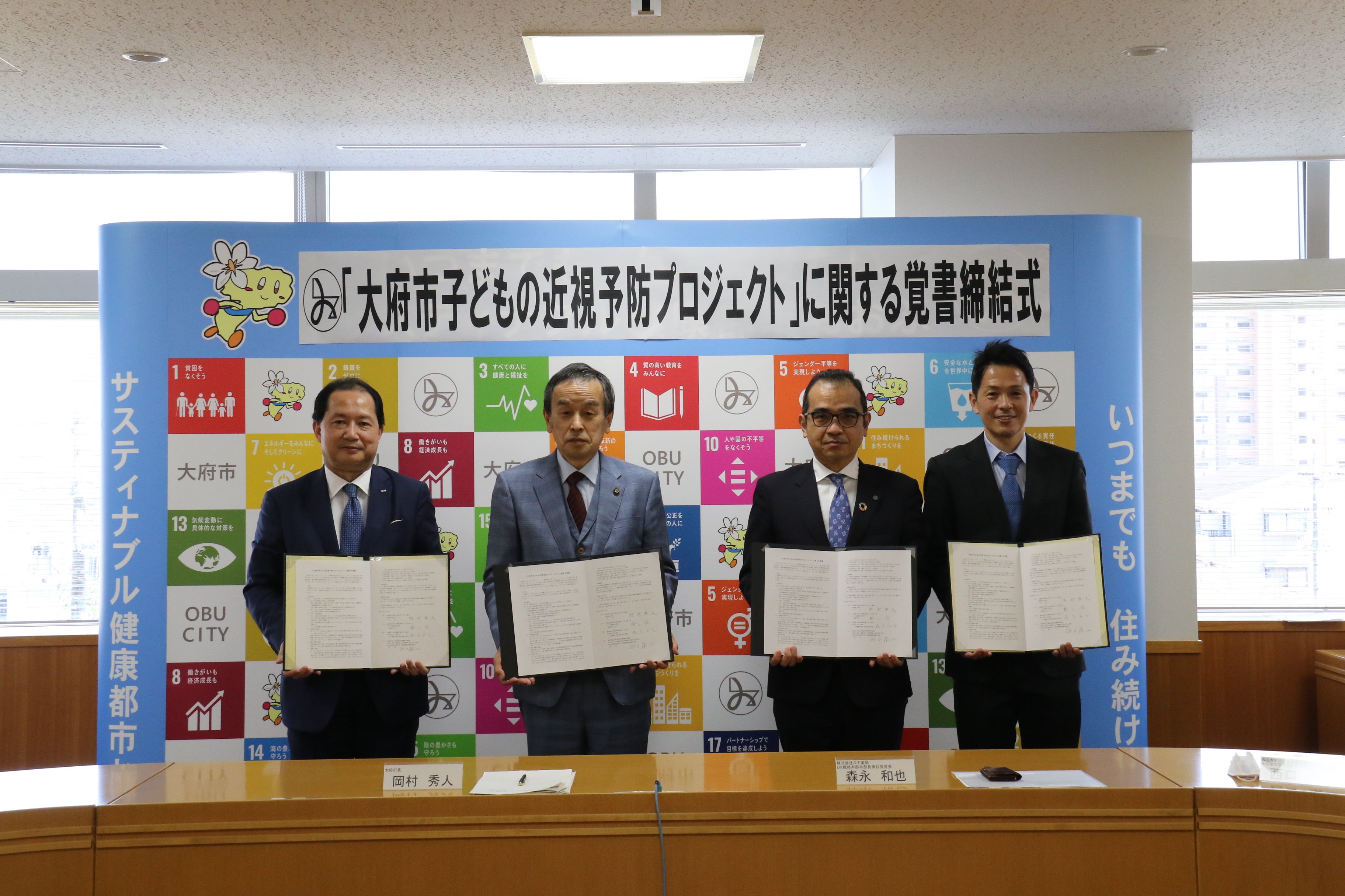愛知県大府市×名古屋大学×スギ薬局×ロート製薬「大府市子どもの近視予防プロジェクト」に関する覚書締結