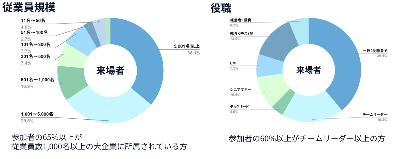 前回の開催では、従業員数1,000名以上の企業から、開発部長、シニアマネージャー、プロジェクトマネージャーといった管理職層の参加が目立ち、大企業ならではの特性が際立ちました。