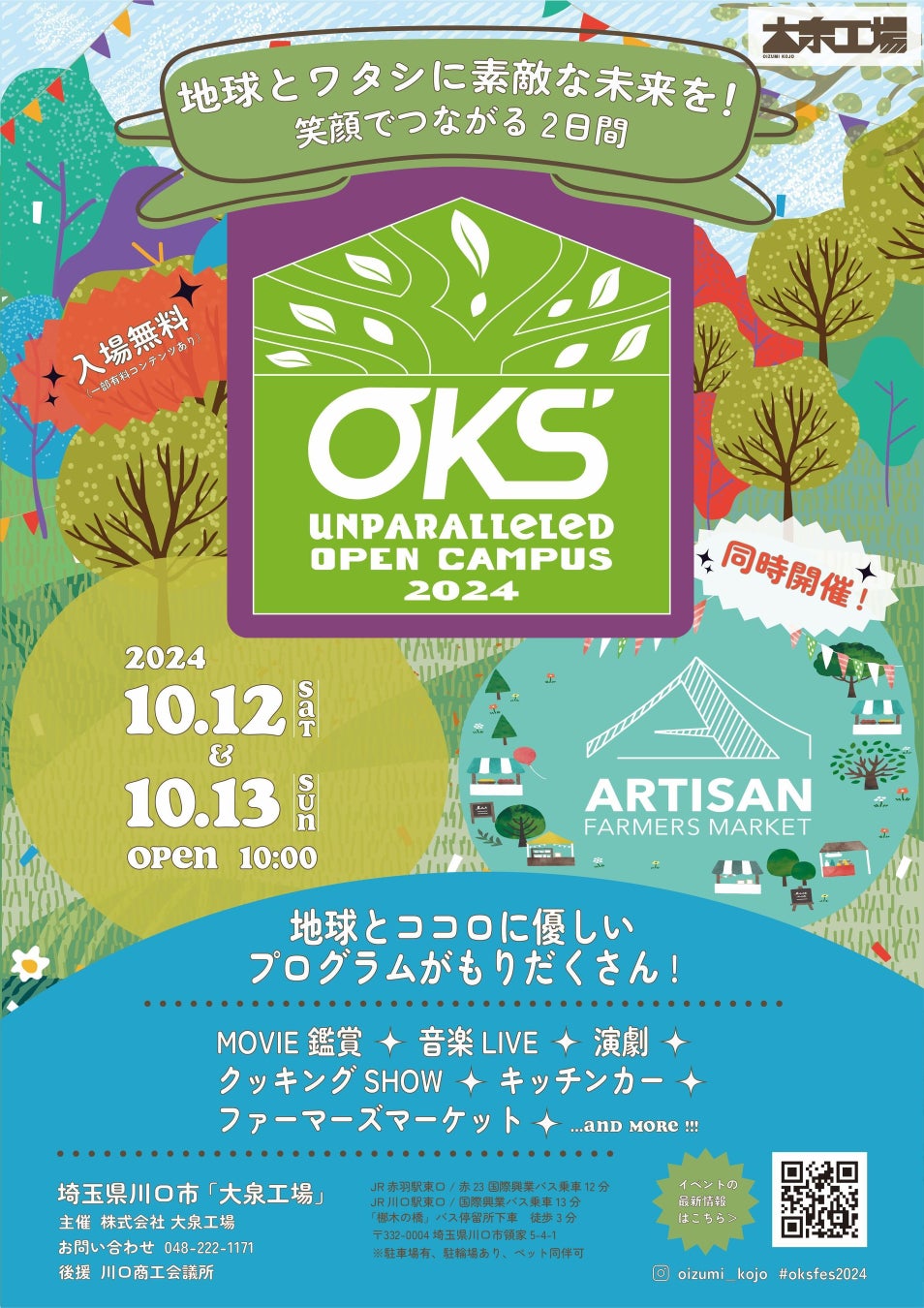 株式会社大泉工場(本社:埼玉県川口市、代表取締役:大泉寛太郎)は、2024年10月12日(土)と13日(日)に、初開催となる1年間で最大規模のサステナビリティイベント『OKS UNPARALLELED OPEN CAMPUS 2024(オーケーエス アンパラレルド オープン キャンパス2024)』を開催いたします。本イベントは、大泉工場が掲げる『素敵な環境を創造する』という理念を体現し、川口市や日頃からお世話になっているパートナーやコミュニティとともに、地球に優しい未来を創るための他に類を見ない機会を提供いたします。