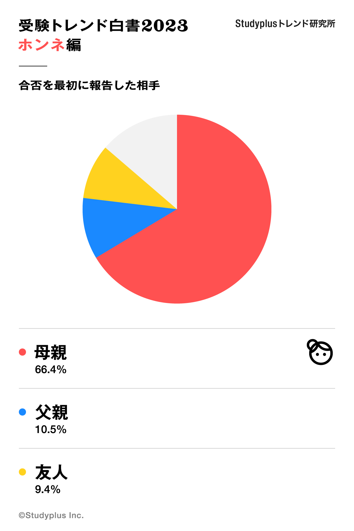 2番目に「父親」が10.5%、5番目に「祖父母」が2.1%と続いており、多くの受験生が家族へ最初に報告していることが分かります。