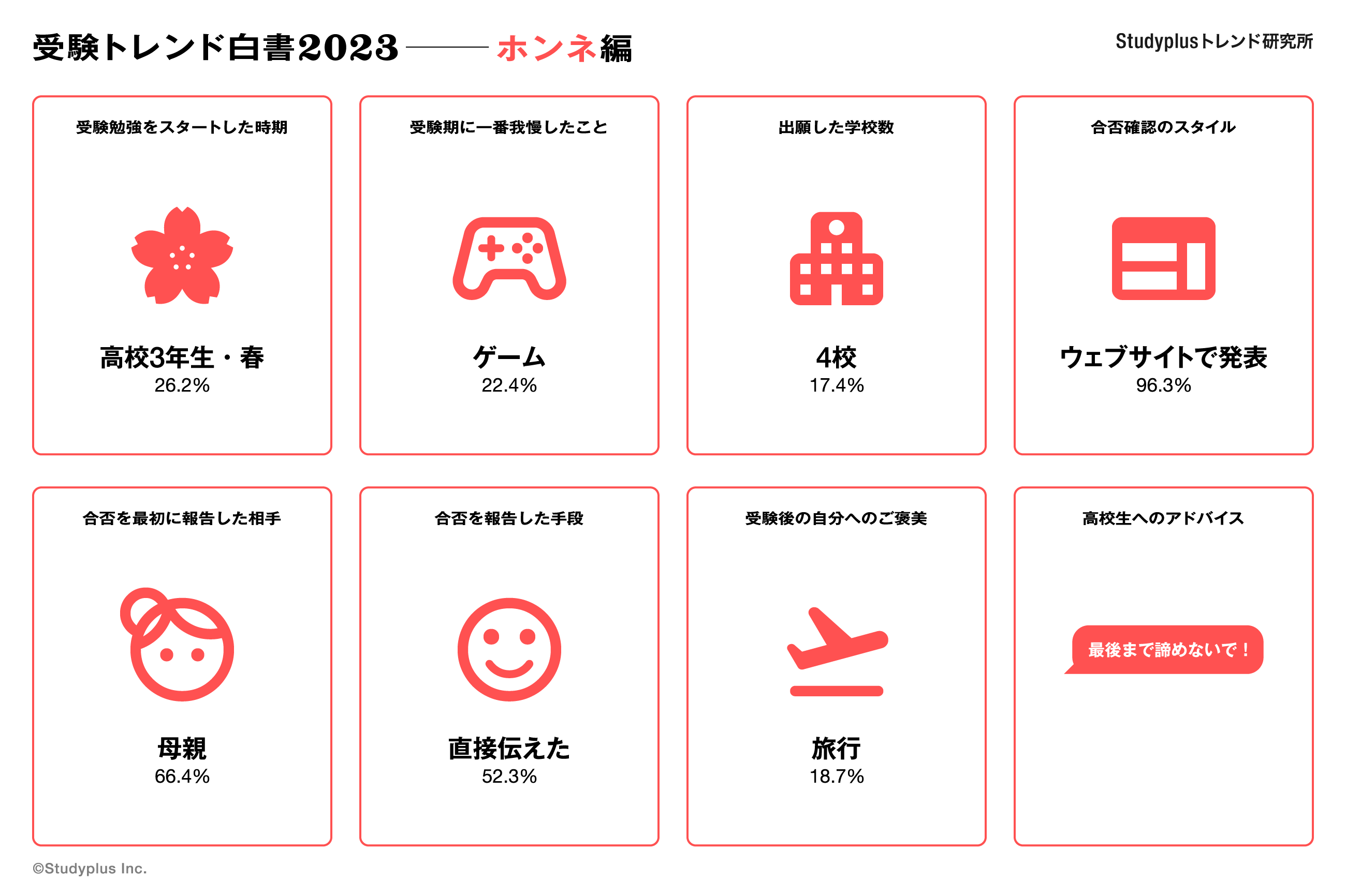 大学受験期に最も我慢したことは「ゲーム」、受験後のご褒美は「旅行」~受験生活についてまとめた「受験トレンド白書2023 “ホンネ編”」を公開~