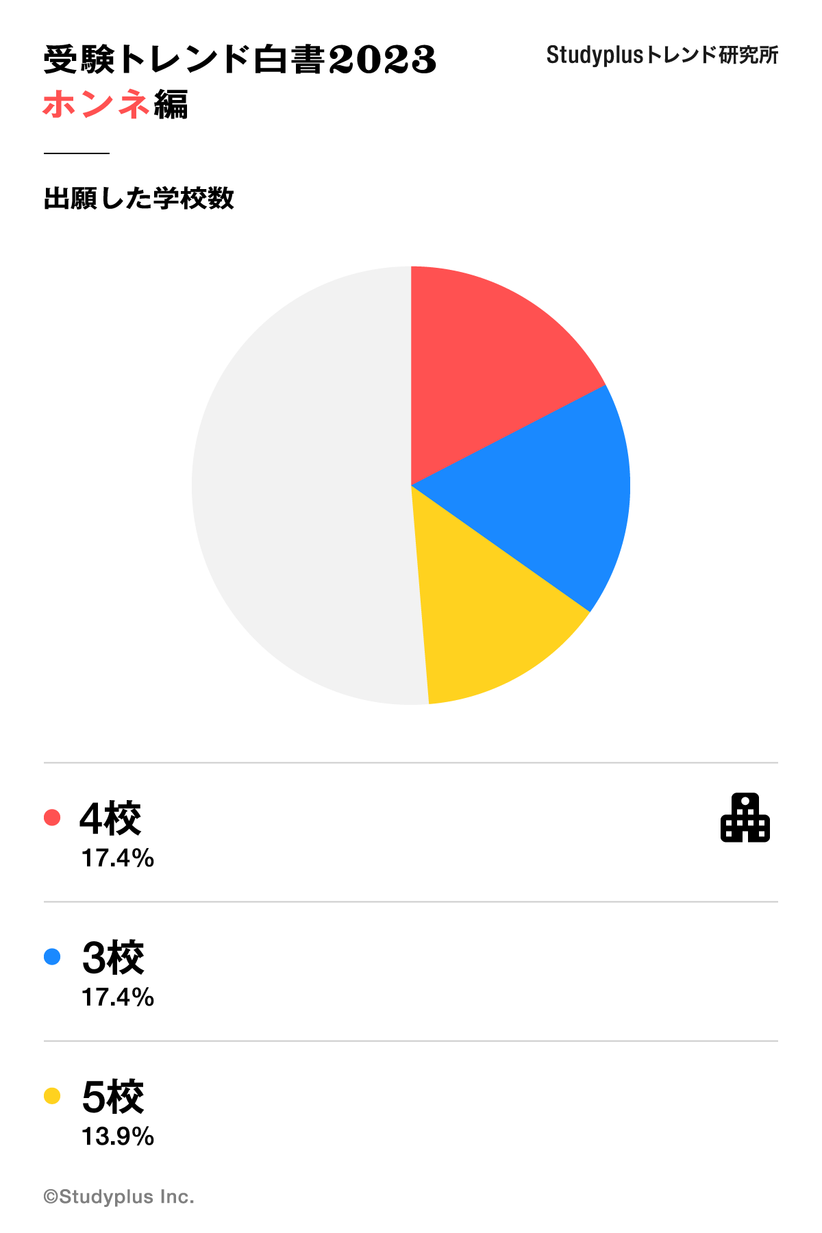 その後は「5校」「2校」「6校」「1校」が続いており、いずれも10%程度の割合を占めています。