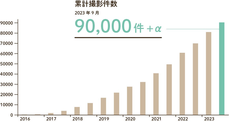 2023年3月に累計撮影件数80,000件突破以降、ご家族の日常の大切な瞬間を残す「家族」写真撮影をはじめ、赤ちゃんの誕生を祝う日本の伝統行事である「お宮参り」や、近年人気が高まっている生後3週間以内の新生児期に撮影する赤ちゃんの記念写真「ニューボーンフォト」など、赤ちゃん~未就学児がいらっしゃるご家族の撮影が人気を博しています。