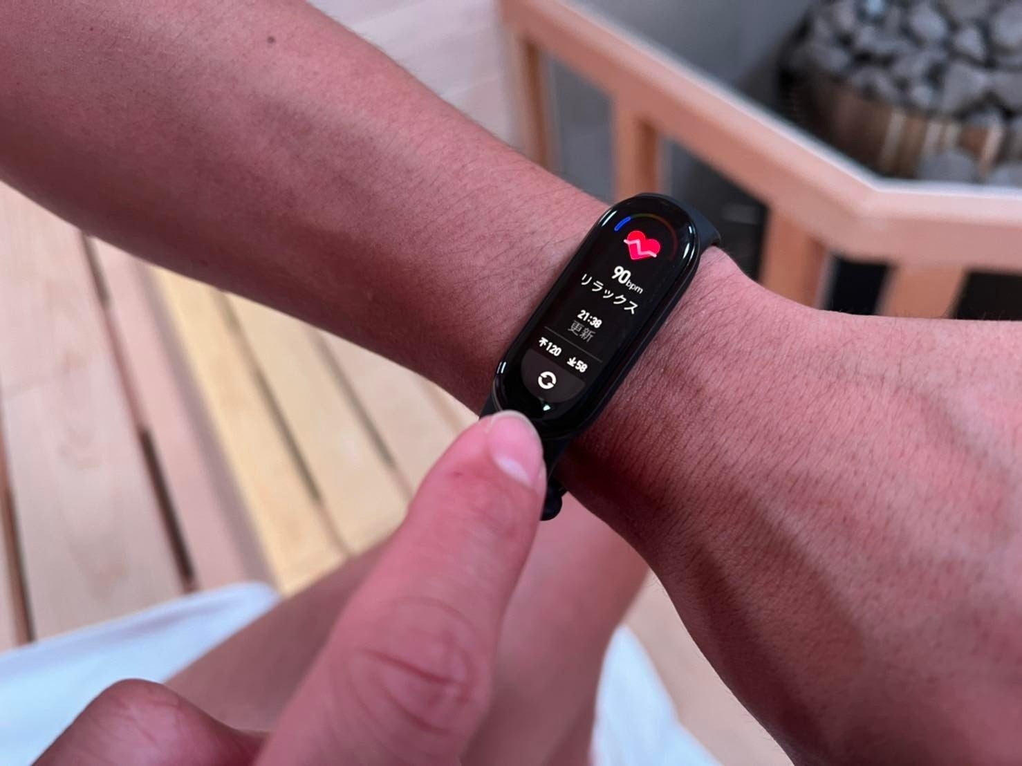 ③サウナに入り、決められた計測時間に心拍の計測を5セット行います。