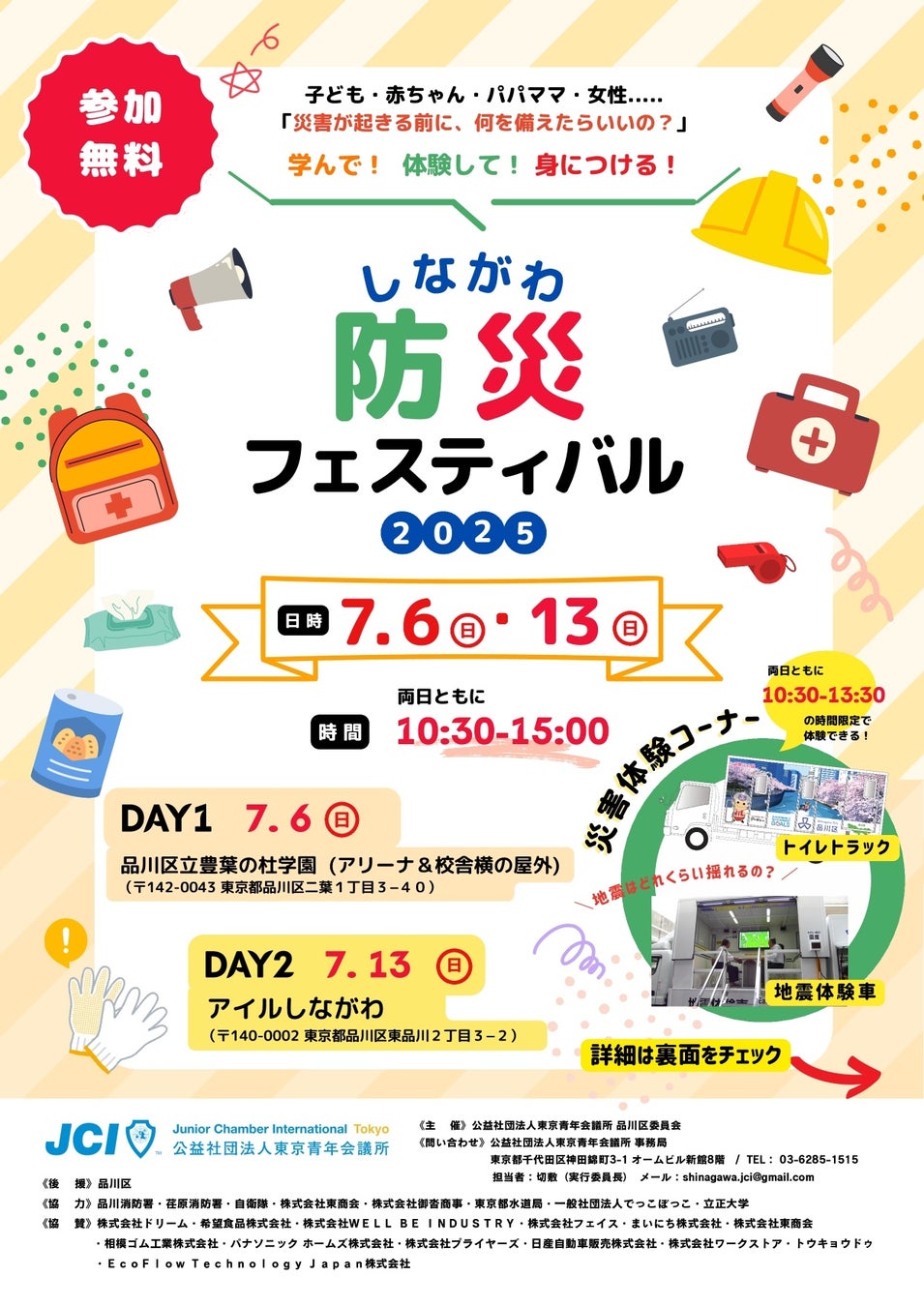 最先端のポータブル電源やクリーンな電力技術を開発するテクノロジー企業、EcoFlow Technology Japan株式会社(本社:東京都中央区、以下EcoFlow)は、公益社団法人東京青年会議所 品川区委員会が地区事業として2025年7月13日(日)に実施する防災体験型イベント「品川防災フェスティバル」DAY2に出展いたします。