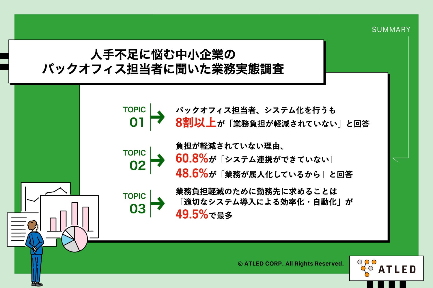 【中小企業におけるシステム化の実態は?】人手不足に悩むバックオフィス担当者、システム化を行うも8割以上が「業務負担が軽減されていない」現状 その理由、60.8%が「システム連携不足」と回答