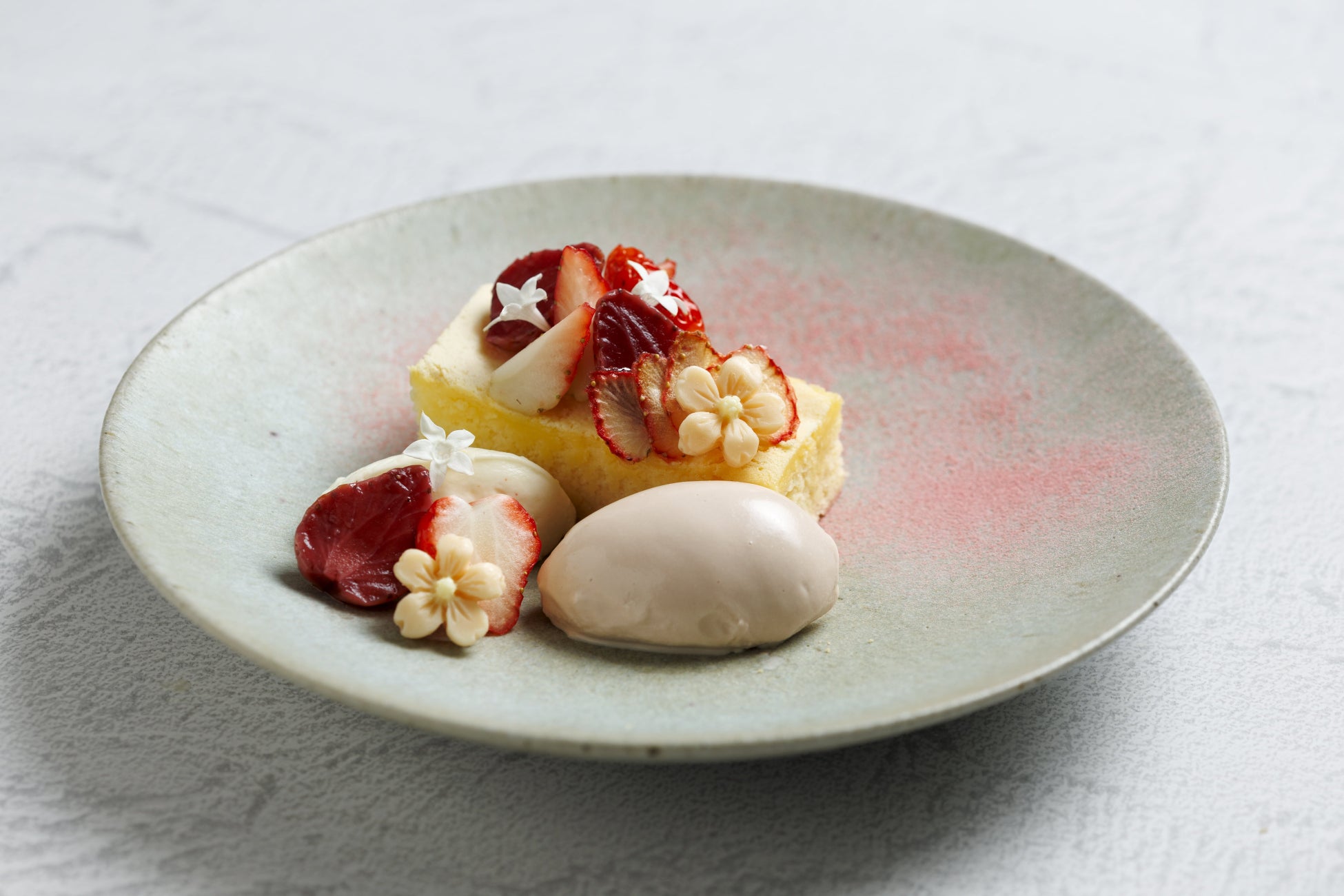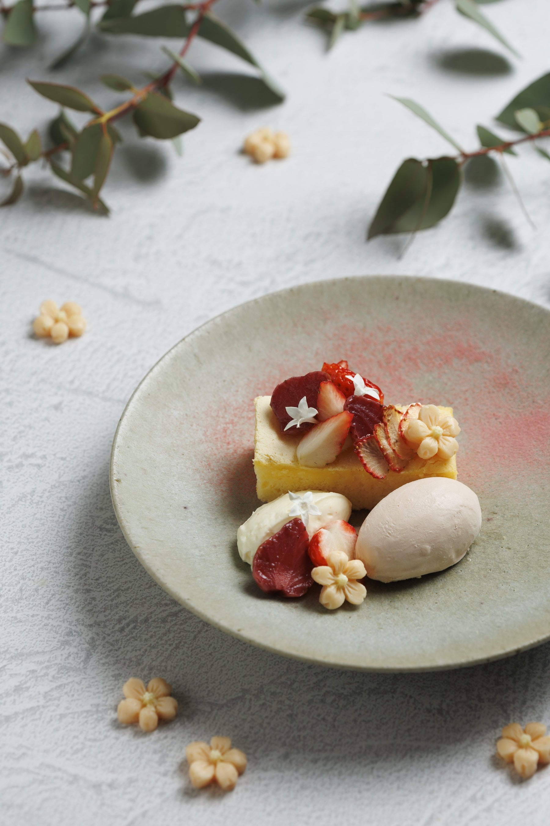 柚子の香りが爽やかなクリームと、桜風味の自家製アイスクリームとあわせてお召し上がりください。