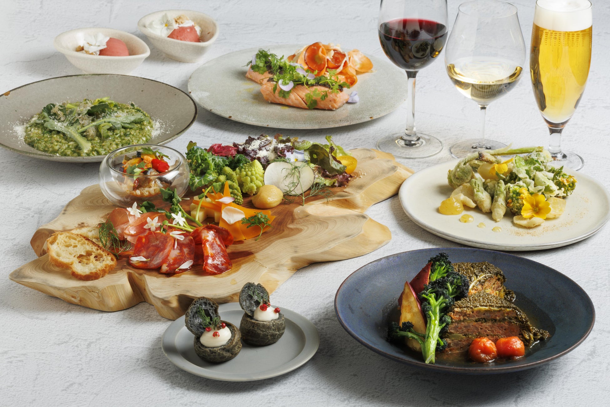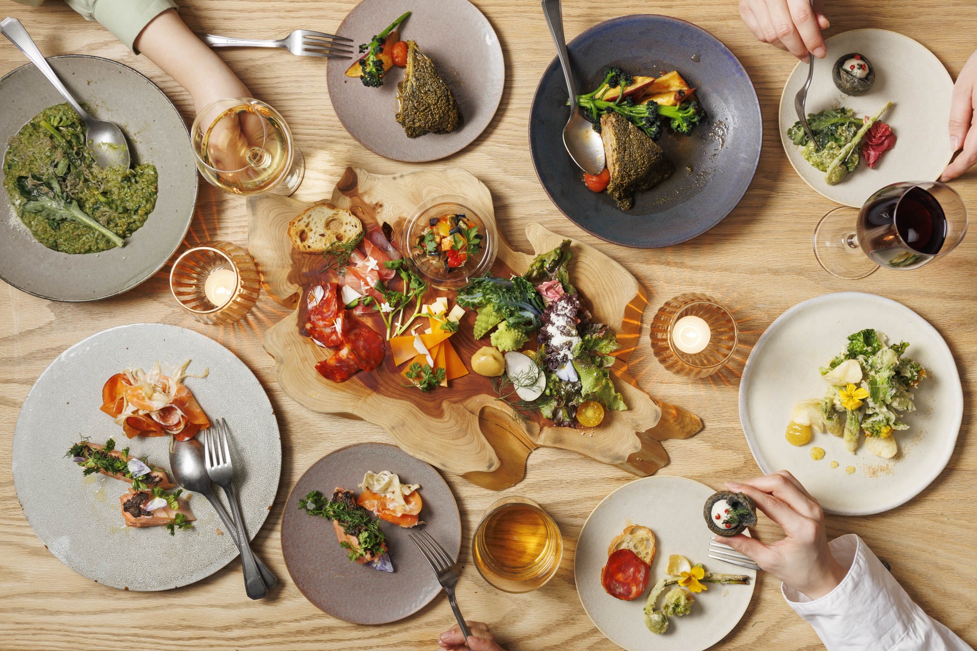 春野菜や山菜を存分に楽しめる、Hyssopらしく彩り豊かに仕上げたシェアタイプのパーティープラン。