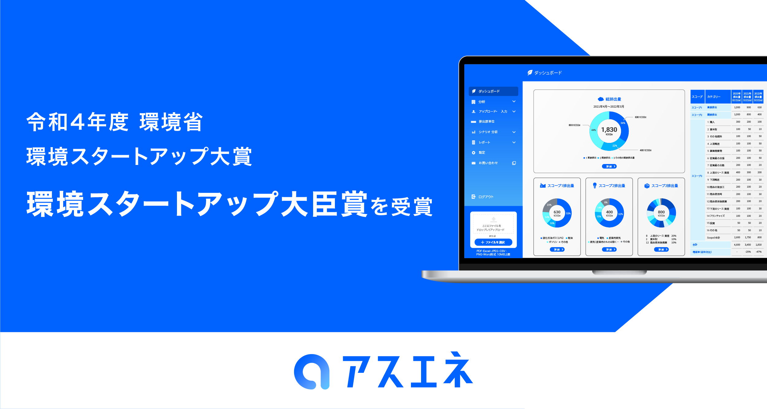アスエネ、令和4年度 環境省 環境スタートアップ大賞で「環境スタートアップ大臣賞」を受賞