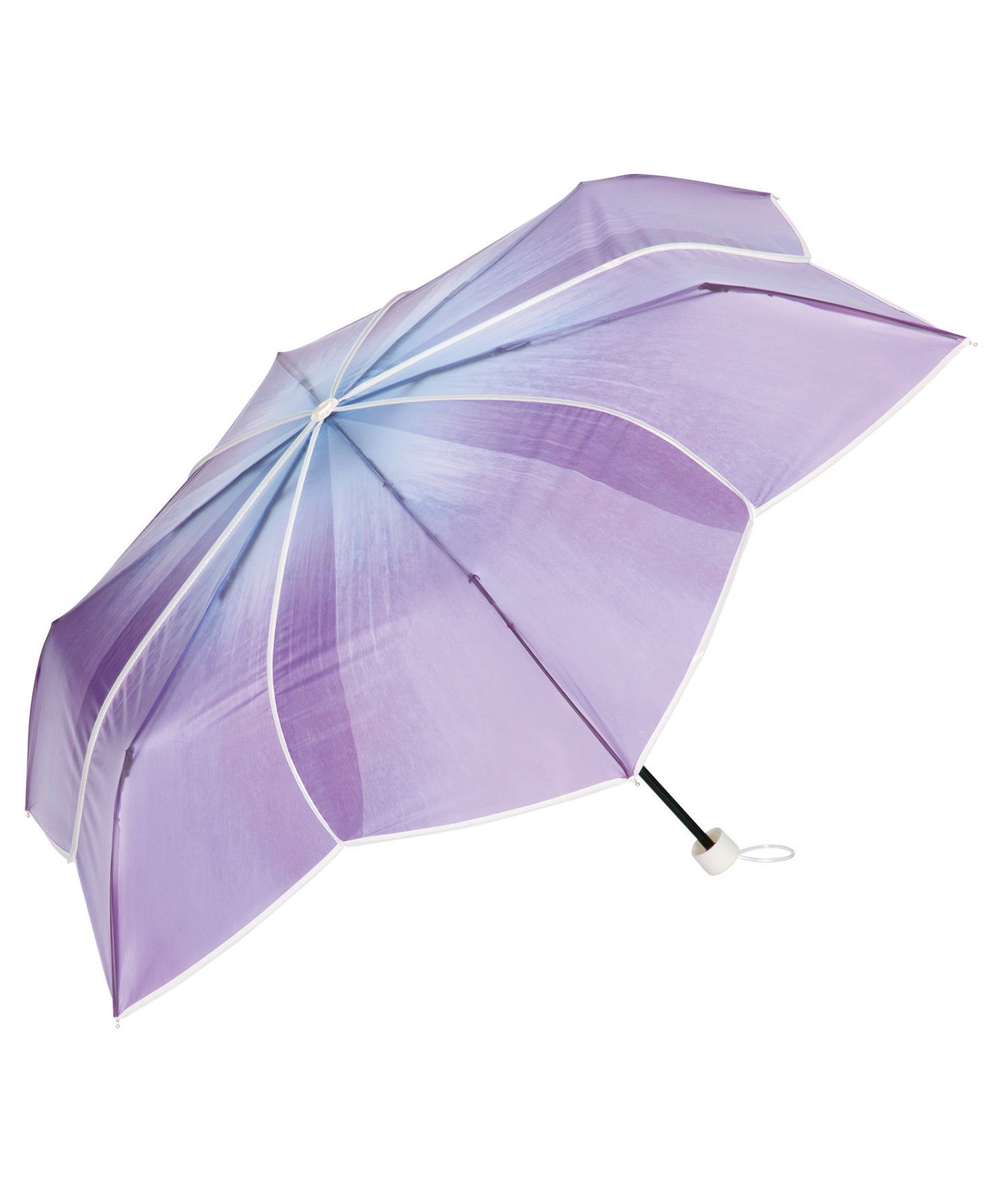 紫陽花は育った土壌によって色が変化する花。傘本体の色味も紫陽花の色の変化をイメージしたグラデーションで表現しました。傘を入れる収納袋にも紫陽花をデザインしています。