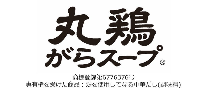 そこで当社は、「丸鶏がらスープ™」のロゴ(以下「本商標」)について2021年に商標登録出願を行いましたが、この度特許庁による審判を経て、発売30周年を迎える2024年2月6日付で以下の内容により認定され、登録商標となりました。