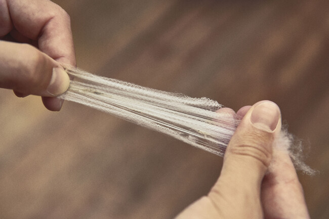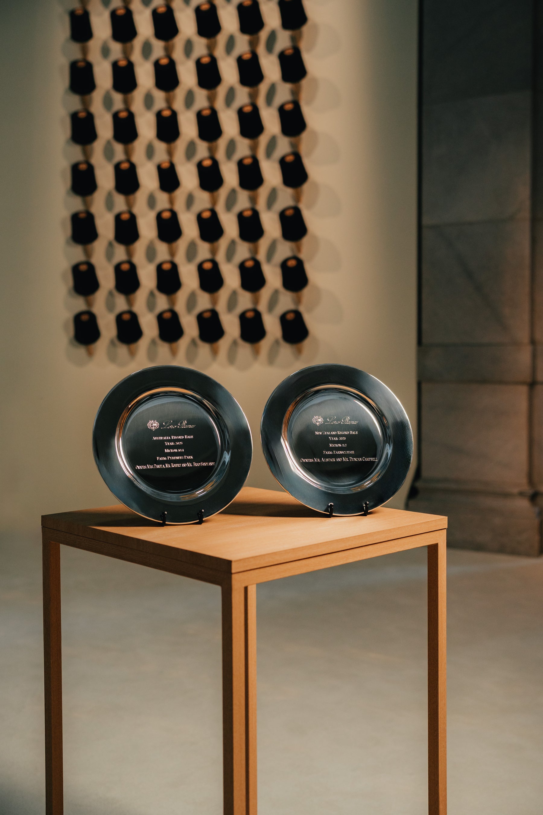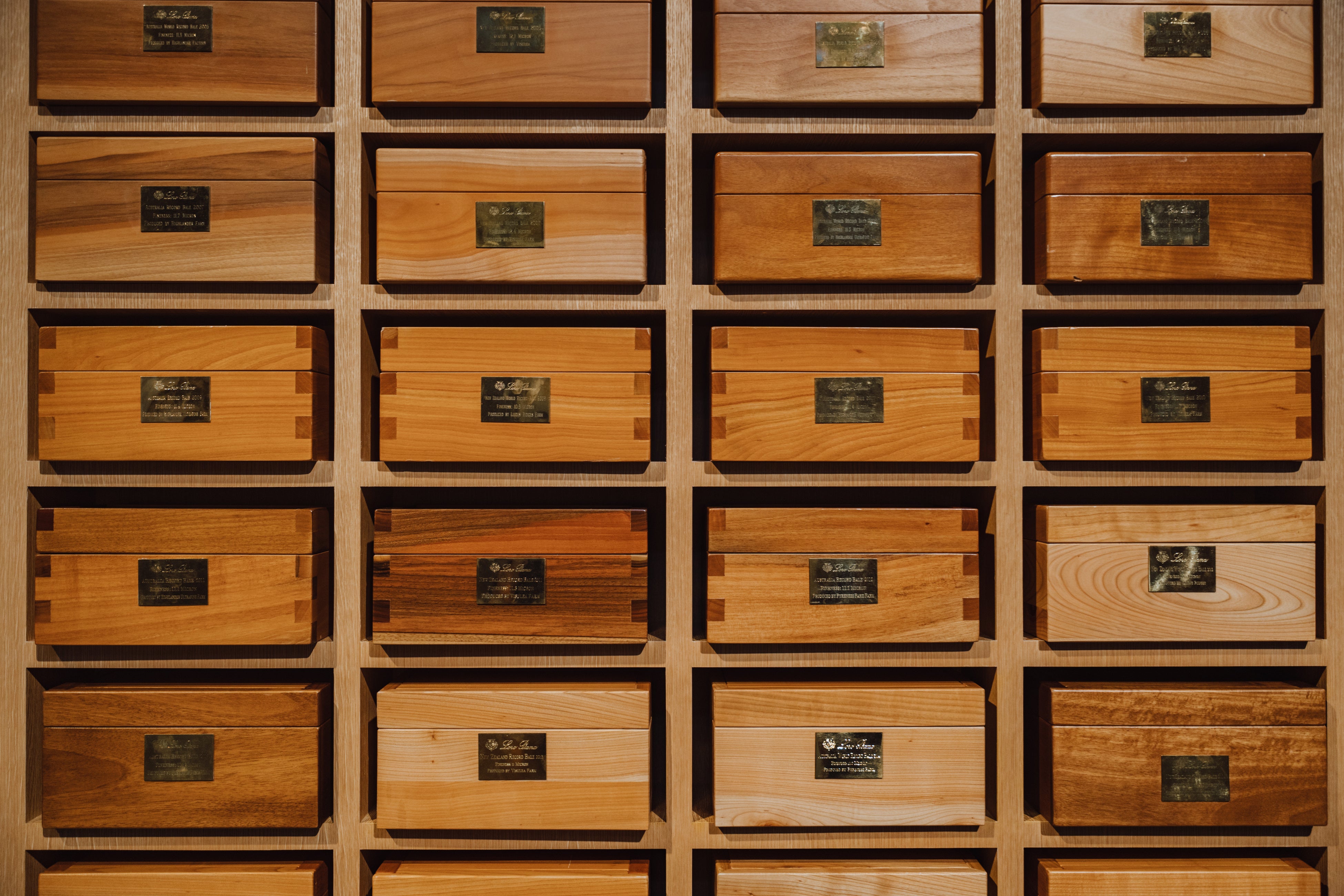 世界記録を樹立したベイルは、次の記録が更新されるまで、ピエモンテ州のロロ・ピアーナのクアローナ工場にて、ガラスの容器に収められて保管されます。新たな記録が樹立されると、以前のベイルは唯一無二のウェアに仕立てられ、最も目の肥えた愛好家のために提供されます。