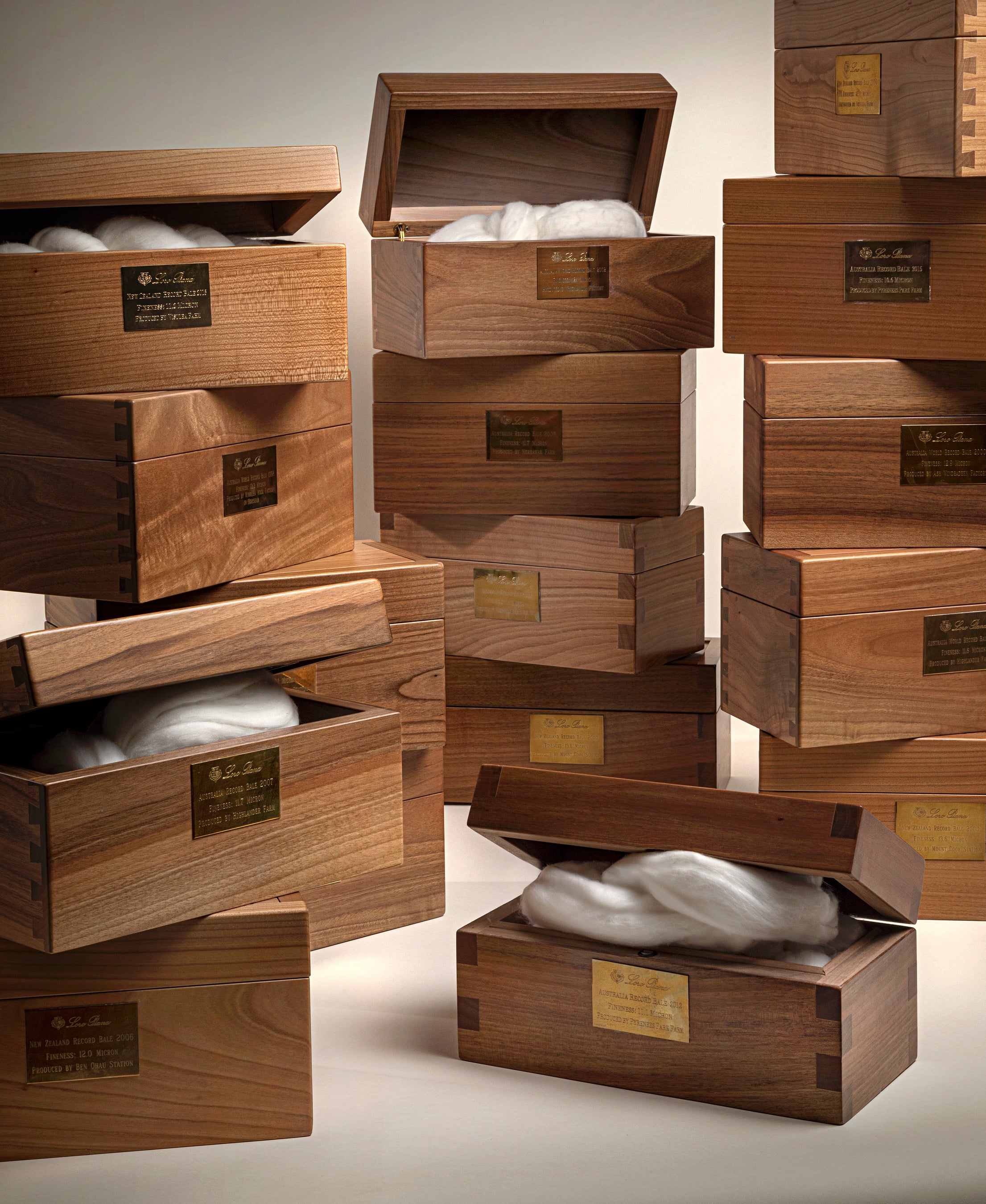 「ロロ・ピアーナ・レコード・ベイル賞」は、ロロ・ピアーナが毎年、オーストラリアとニュージーランドのトップ牧場に、その優れた功績を讃えて贈る賞です。この賞は、ブリーダーが最高品質のメリノウールを生産することを奨励するとともに、ロロ・ピアーナのお客様には、世界にたったひとつしかない特別なアイテムを手に入れる機会を提供します。長年にわたり、「ロロ・ピアーナ・レコード・ベイル賞」は、妥協のない品質、革新性、上質なメリノウールを追求し続ける姿勢を讃えてきました。最初のレコード・ベイルは、ニュージーランド産のメリノウールで、13.8ミクロン、重さ100kgでした。ブリーダーたちの惜しみない献身と、より上質なウールを生産したいという情熱のおかげで、繊維の細さはおよそ30%向上しました。
