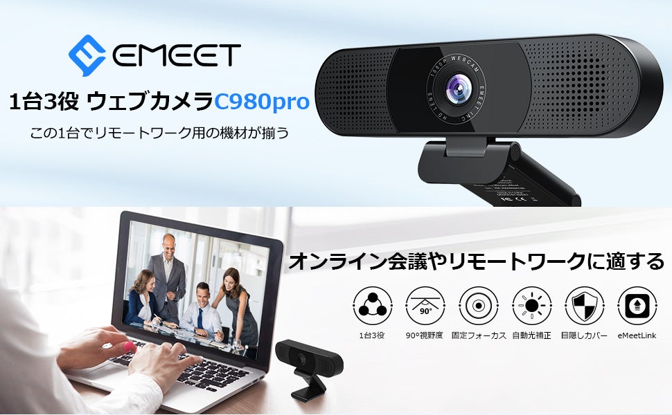 【Amazon12時間限定セール】EMEET社ウェブカメラC950/C980proの限定セール!コスパ高い、良質なビデオ会話・ライブ通信、オンライン会議にも最適!
