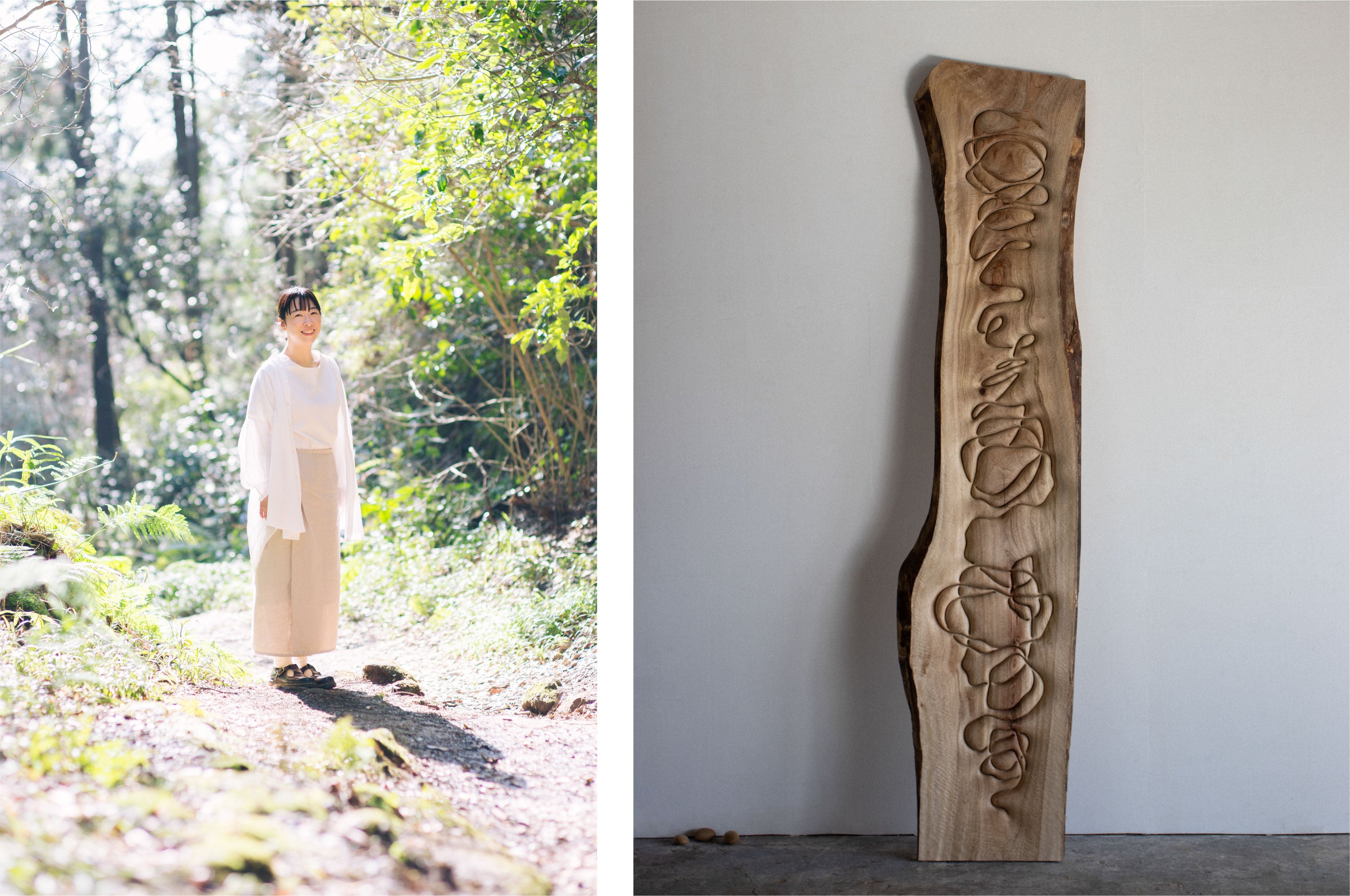1993年神奈川県生まれ。武蔵野美術大学造形学部彫刻学科を卒業し、東京藝術大学美術研究科彫刻専攻修士課程を修了。線と余白を主題に、木彫技法にて作品を発表している。主な個展に、「ぽろぽろしたたる」(文ヶ学、大分、2025)、「草々」(HAGISO、東京、2024)、「山の端、切り込み」(銀座蔦屋書店、東京、2023)、グループ展に、「whirlpool」(GASBON METABOLISM、山梨、2025)「有楽町ウィンドウギャラリー2025」(HIGASHIYA man 丸の内、東京、2025)、MEET YOUR ART FESTIVAL 2024「NEW ERA」(天王洲運河一帯、東京、2024)など。パブリックコレクションとして、2020年株式会社西武ホールディングス新本社ビル ダイヤゲート池袋に作品設置。2024年、料理宿「撚る屋」客室サイン彫刻(岡山)、北白川糕糰店の表札(京都)などの制作も手掛けている。
