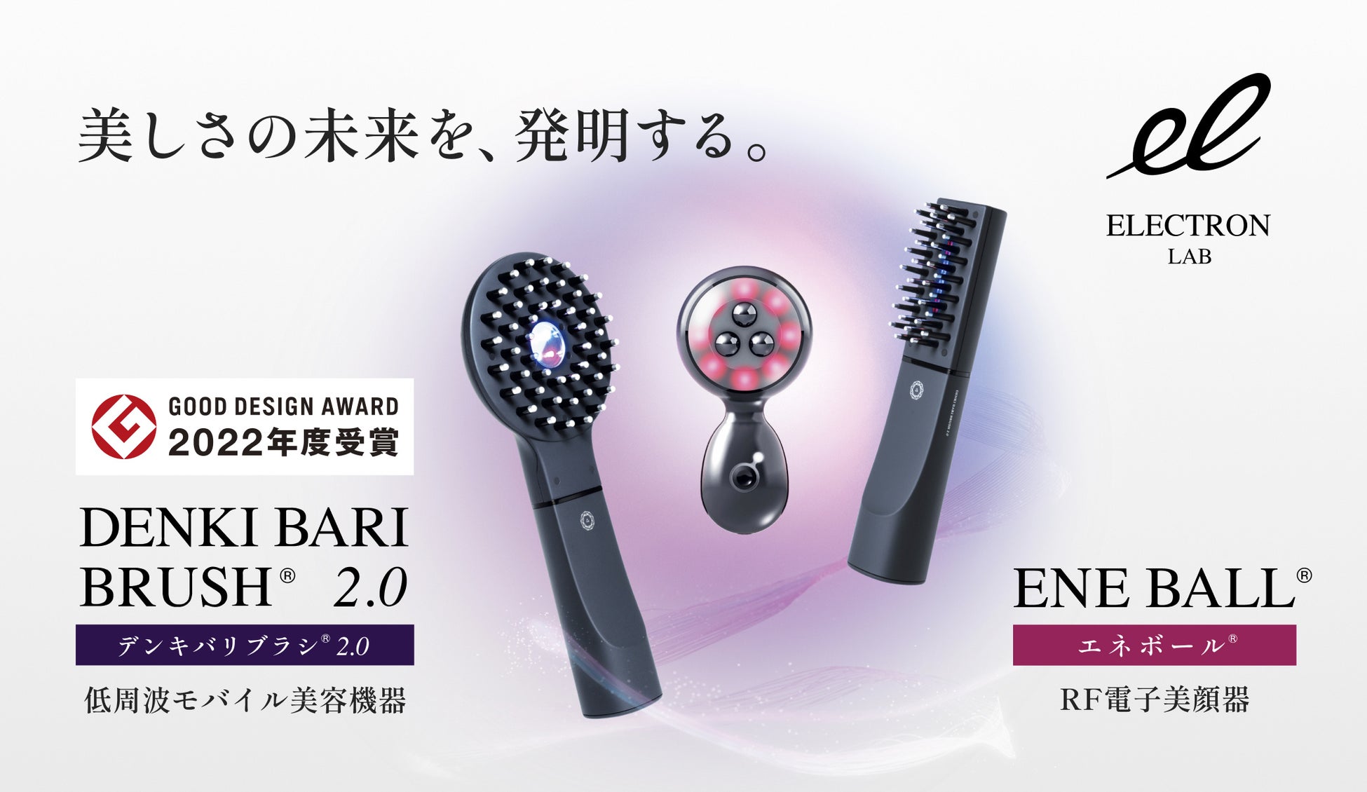 頭皮ケアからボディケアまで、全身ケアが可能な低周波美容機器『デンキバリブラシ® 2.0 +ボディ』をはじめ、 業務用エステ機器のラジオ波(RF)応用技術から生まれた、ご自宅で手軽に使用可能なRF電子美顔器『エネボール®』など“実感をともなう美容体験”を追求したプロダクトを展開する「エレクトロン ラボ」。