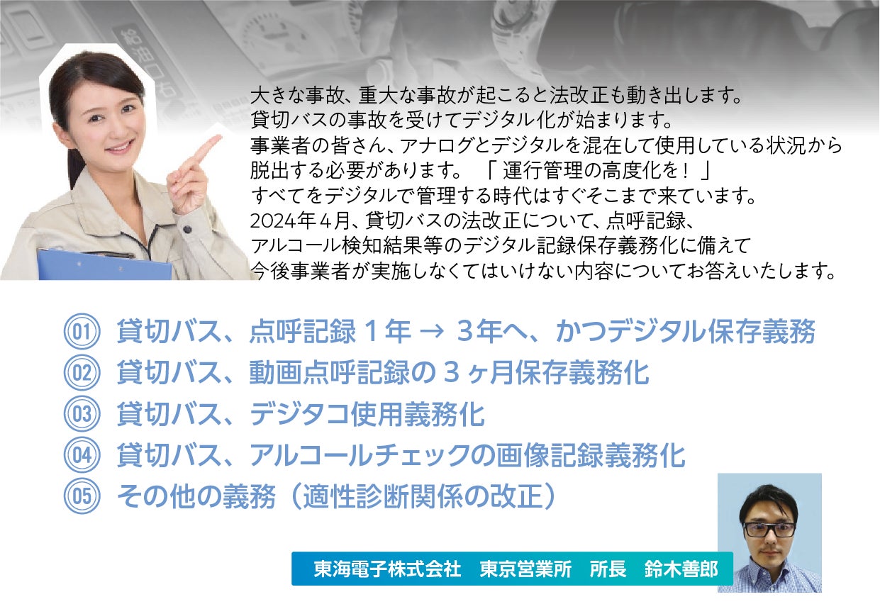 貸切バスの事故を受けてデジタル化が始まります。