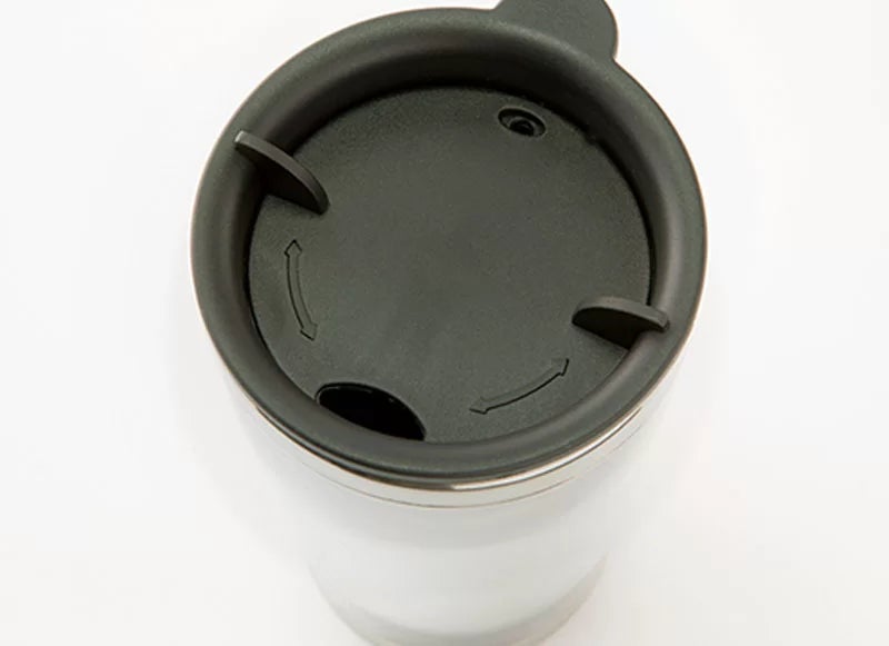 フタを回すだけで飲み口が現れる回転式フタ付きなので、手軽に使用できます。洗いやすい構造で日常使いにも便利です。