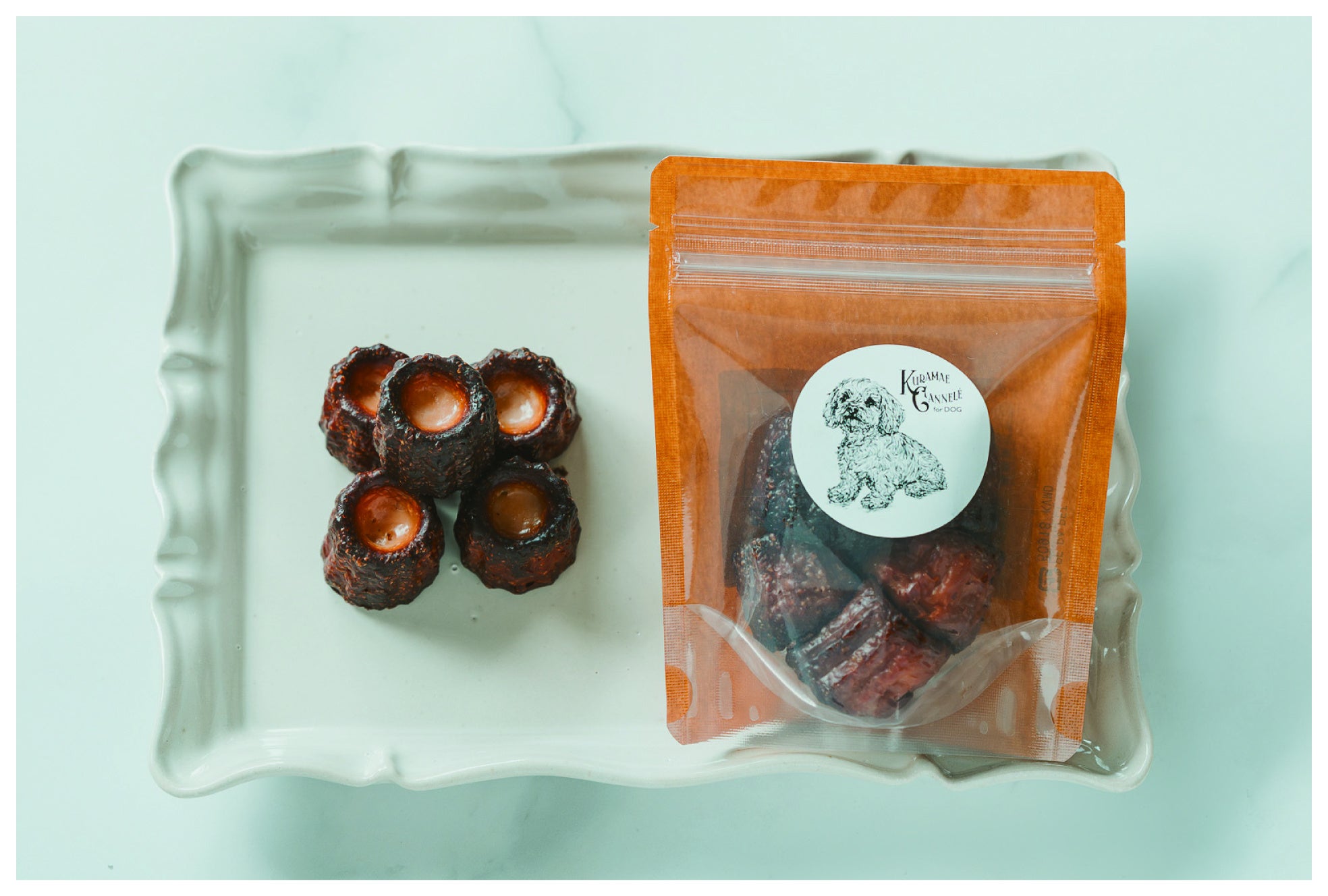 また、今回の催事では獣医師監修のもと、素材や配合に配慮して開発した「愛犬用クラマエカヌレ」も販売いたします。「大切な家族であるわんちゃんとも同じ時間を囲んでほしい」という思いでできた愛犬用カヌレ。人用のカヌレづくりで培ってきた“焼き”へのこだわりを活かしながら、わんちゃんの体に配慮した、KURAMAE CANNELÉならではの愛犬用カクラマエカヌレです。