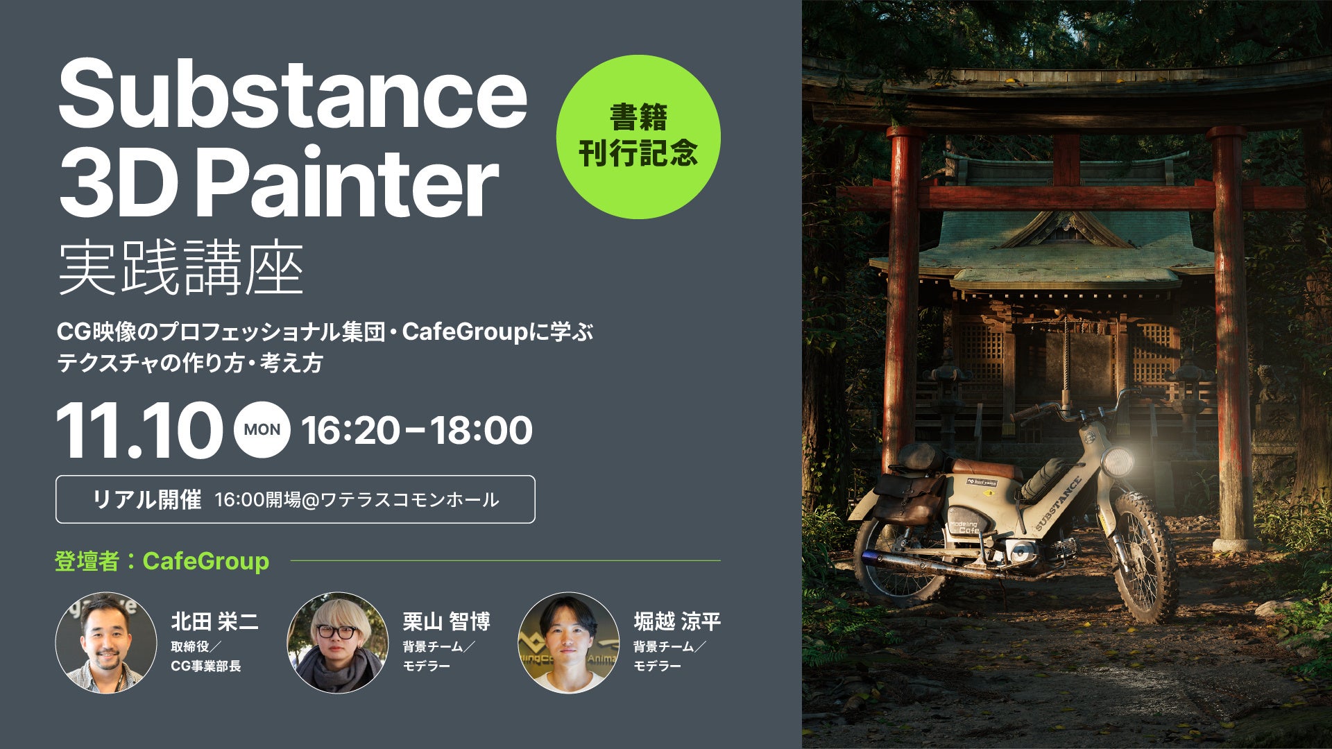 ゲームやCM、MV、映画などさまざまなクリエイティブを手がけ、CGの写実的表現に定評のあるCafeGroupが、Substance書籍の第二弾を記念して、イベントを開催!