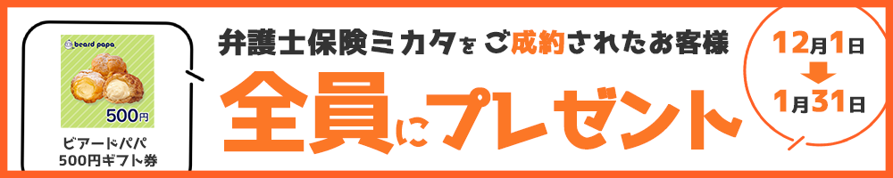 「弁護士保険ミカタ」ご成約で「ビアードパパ 500円ギフト券」もれなくプレゼント【弁護士保険STATION】